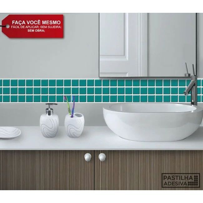 kit 10 Pastilhas Adesivas alto brilho porcelanato impermeável cozinha banheiro box lavanderia