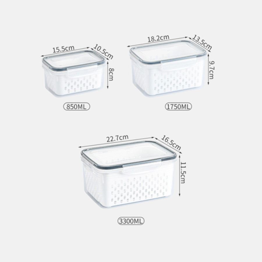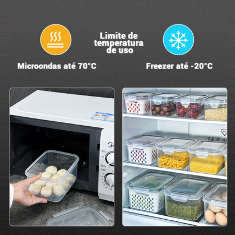 Organizador com 3 Potes Herméticos para Geladeira de Frutas e Alimentos com Cesto e Tampa