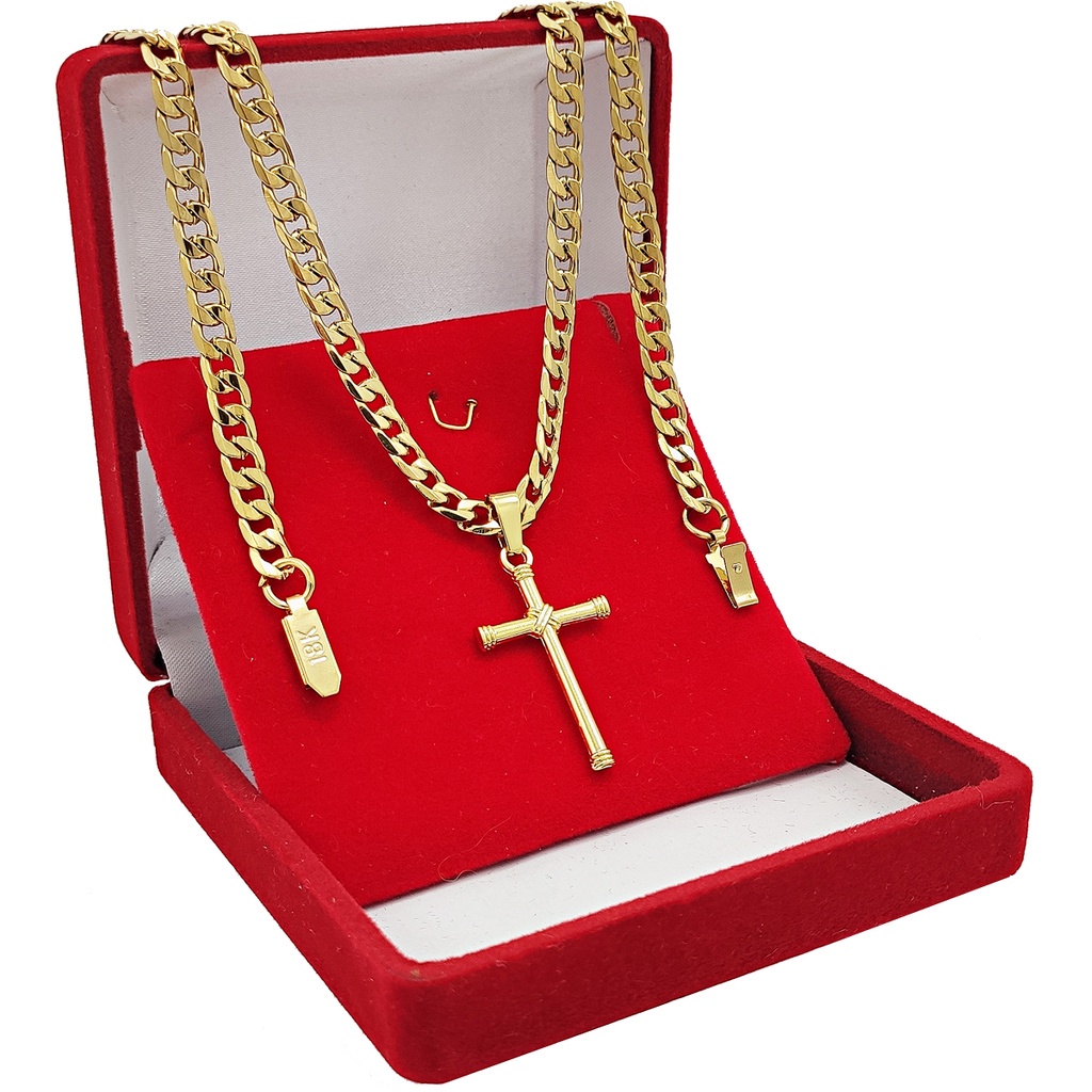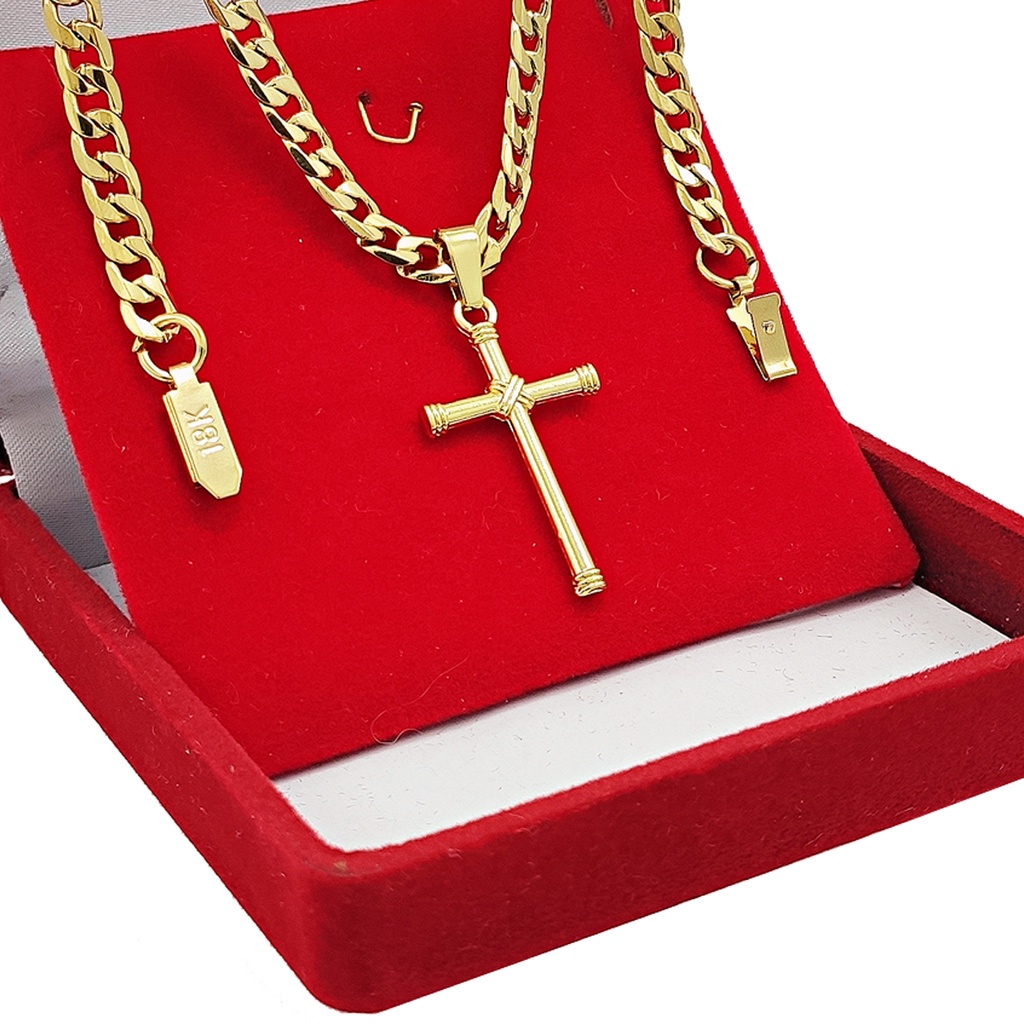 Corrente Masculina Cordão Grumet Banhado a Ouro 18k 70cm Dourado Pingente Crucifixo e Pulseira Grossa