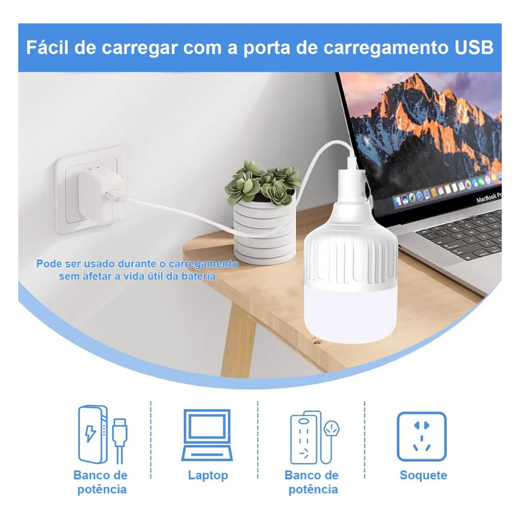 Lâmpada LED Recarregável 40W com 5 Modos – Portátil, USB, Ideal para Jardim, Camping, Festas e Varanda