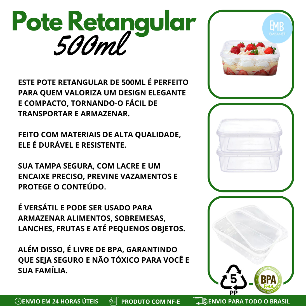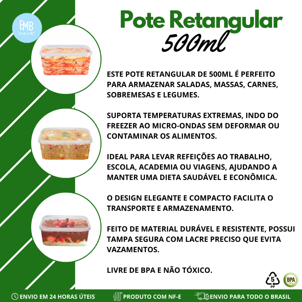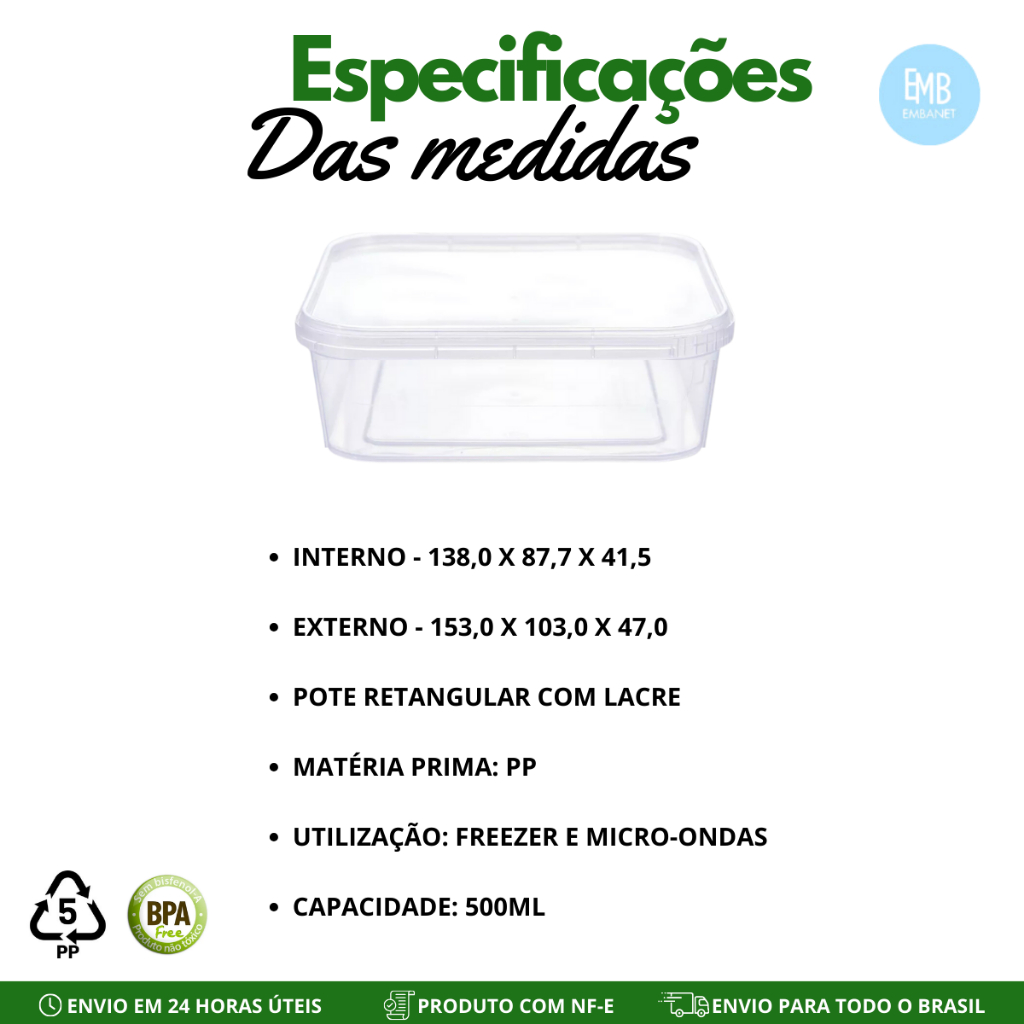 20 Pote Para Marmita Fitness Freezer Tampa Lacre 500ml
