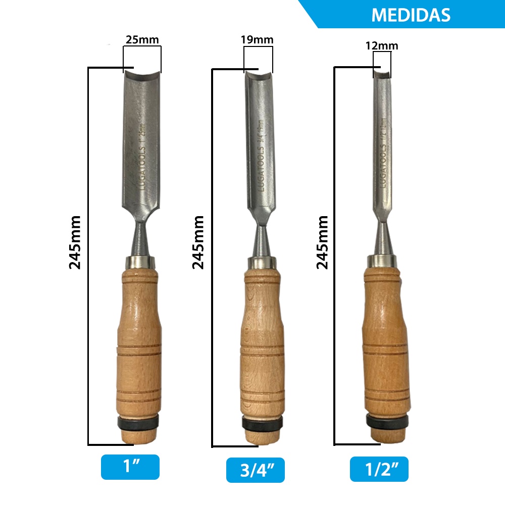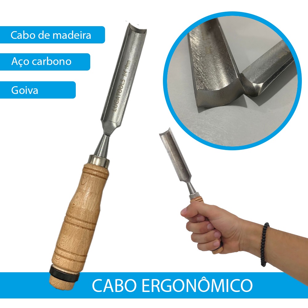 Jogo Kit Formão Goiva Para Entalhe Madeira 3 Peças 1/2 - 3/4 e 1pol Goivado Ferramentas
