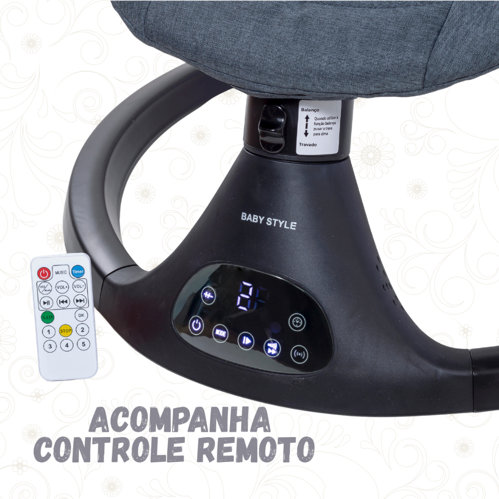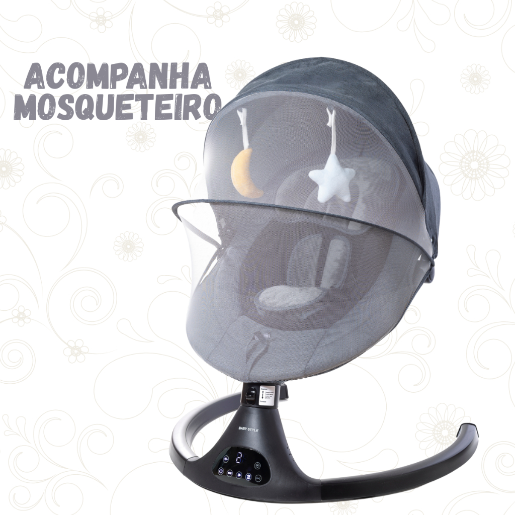 Cadeira de Descanso e Balanço Elétrica para Bebê Baby Style com Música, Mosquiteiro Controle Remoto
