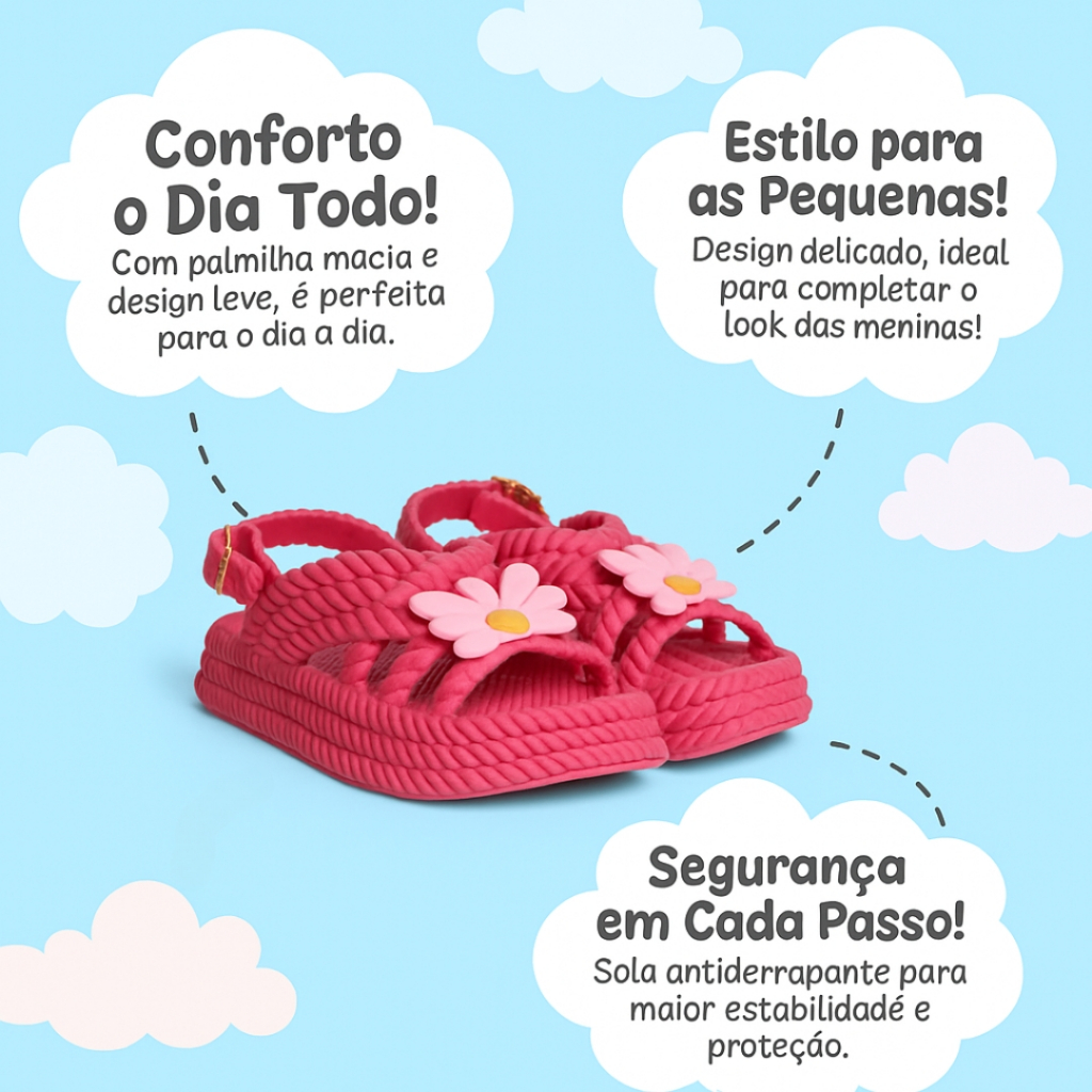 Sandália Papete Infantil Margarida Juvenil e Macia Baby Trançada - Envio Imediato