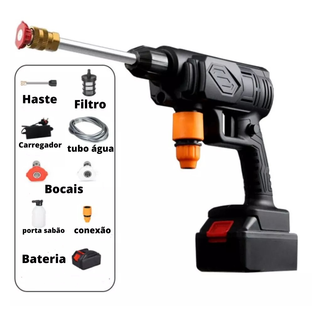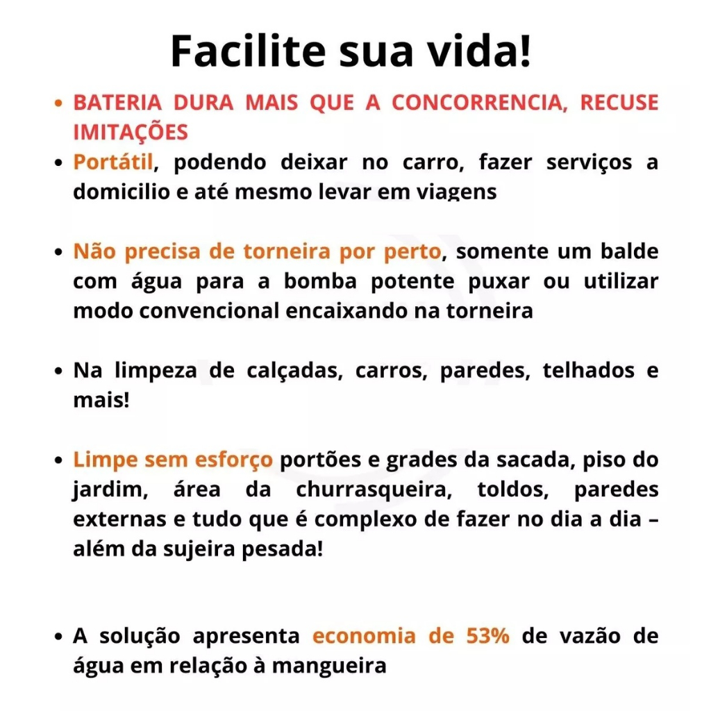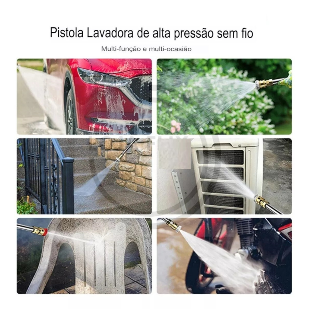 Lavadora Mangueira Jato de Água Alta Pressão Recarregável Portátil Sem Fio