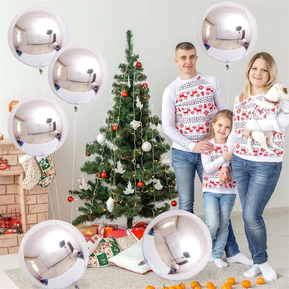 Kit c/ 12 Balão Metalizado Bola Globo 4d Prata Festa Decoração Enfeites - 4 Cada Tam
