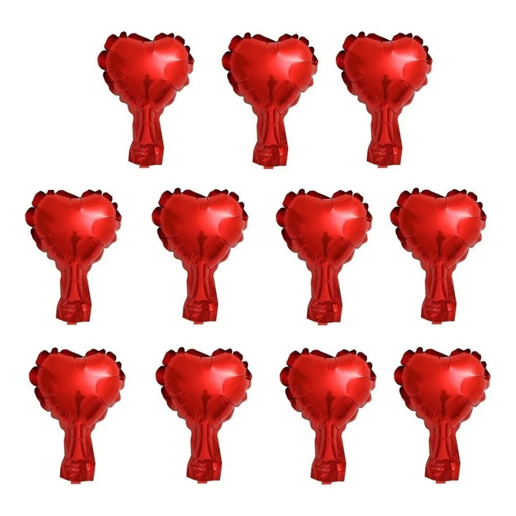 50 Balão Metalizado Mini Coração Vermelho Centro de Mesa 5 Polegadas 12cm