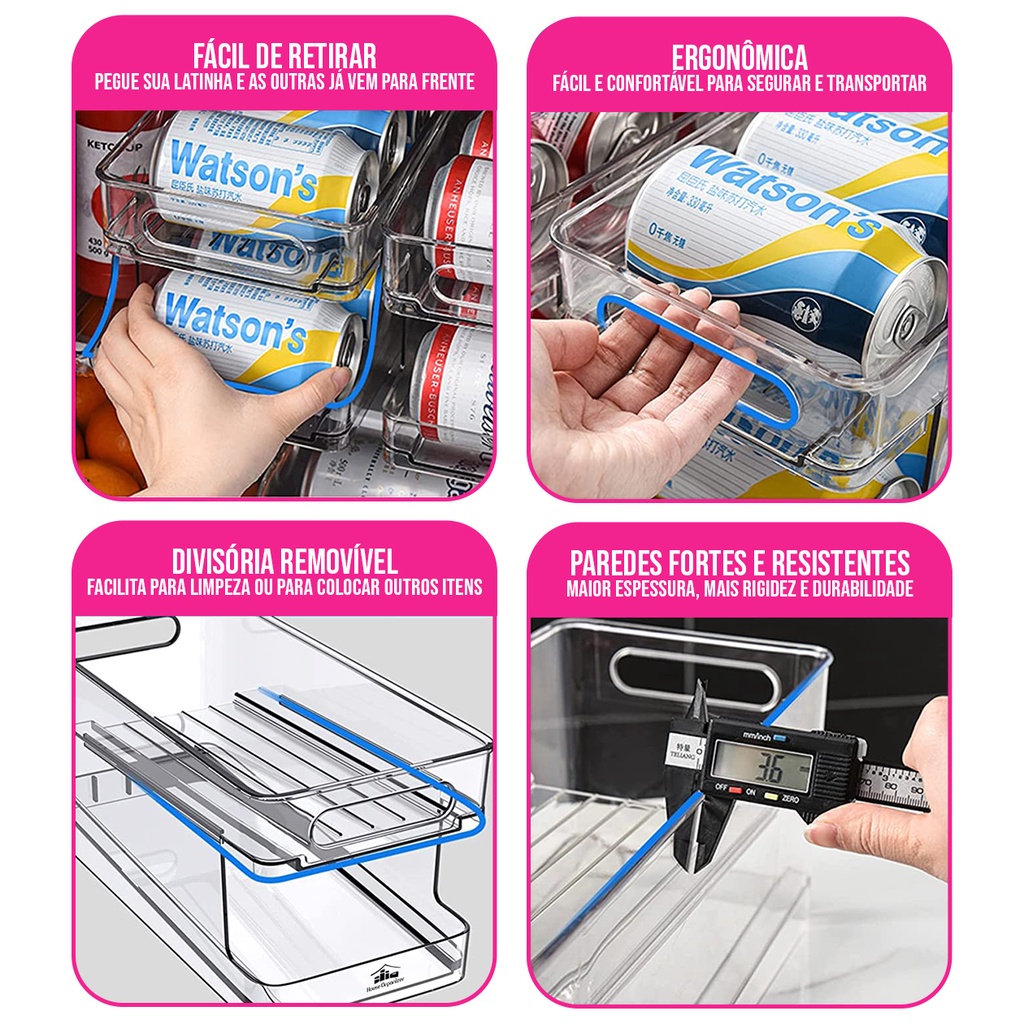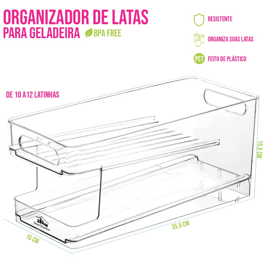 House Organizer Organizador de Geladeira Armário P/ Latas Acrílico Refri