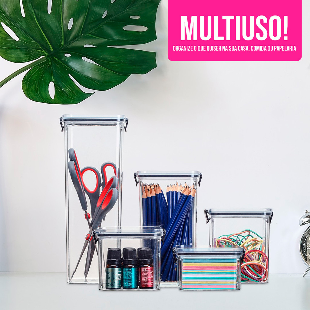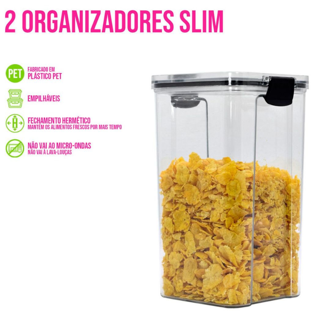 Kit 2 Potes Organizacionais 1,45 Litros Herméticos Slim Tampa