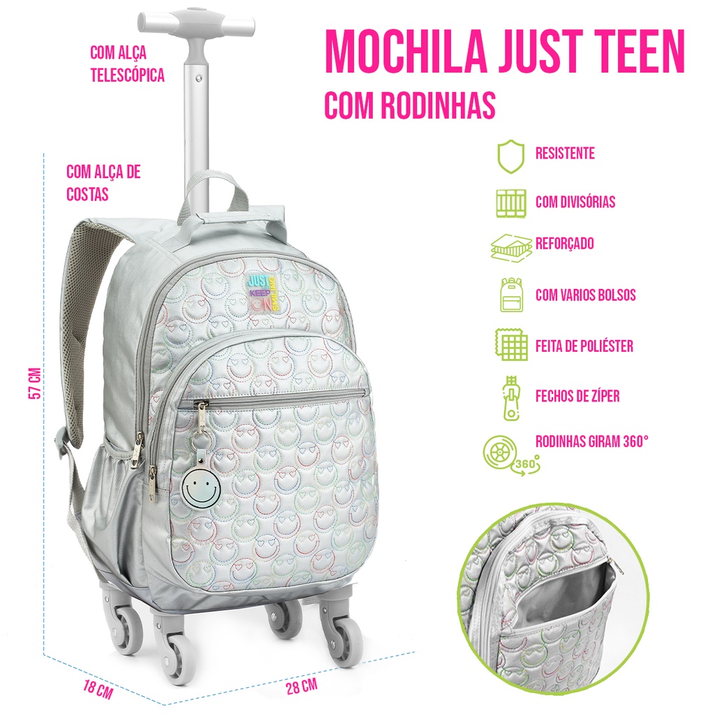 Kit Escolar Infantil Mochila Rodinhas Happy Lancheira Estojo