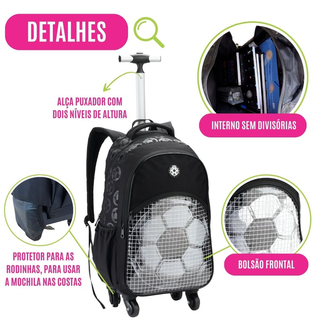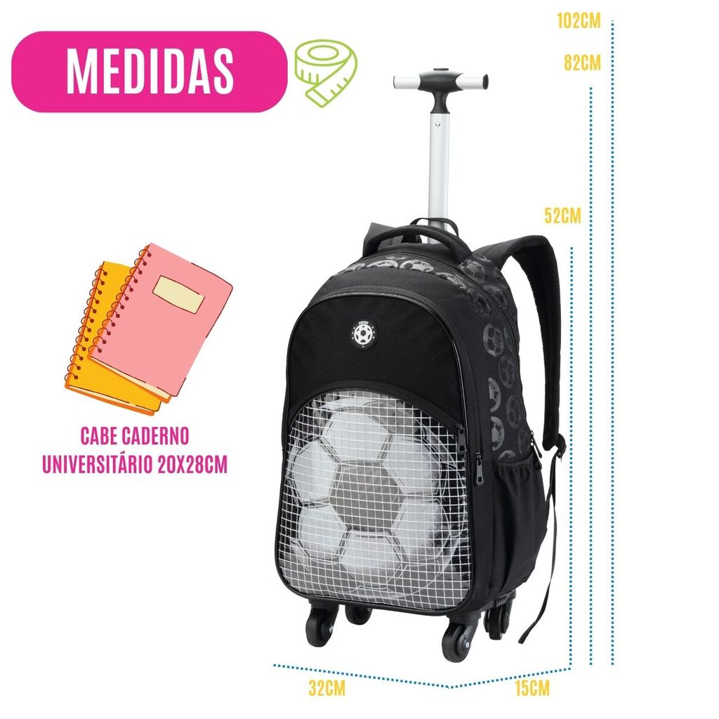Mochila de Rodinhas Material Escolar Resistente Estampa Futebol P/ Meninos Infantil Grande