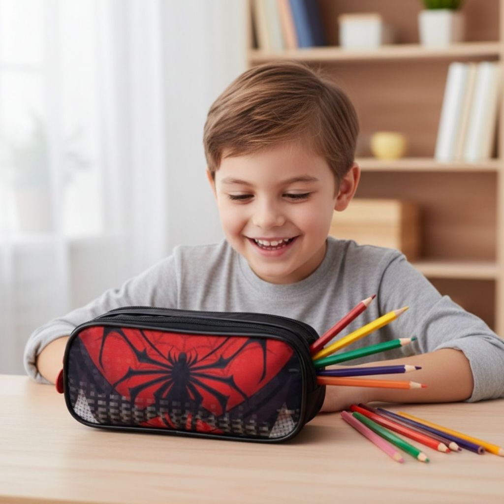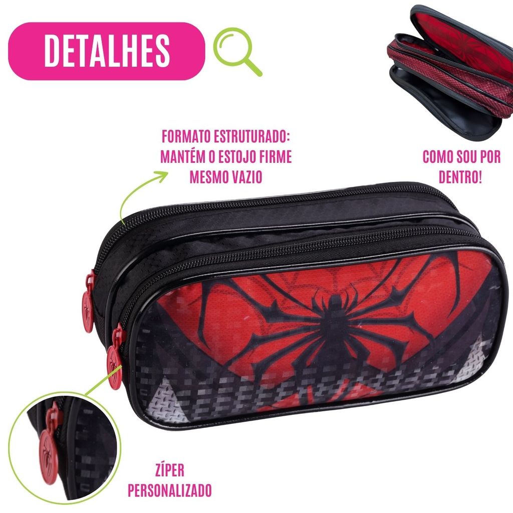Estojo Escolar Grande Estampa Herói Material Reforçado Compartimento Duplo P/ Meninos Infantil Lápis Caneta Borracha