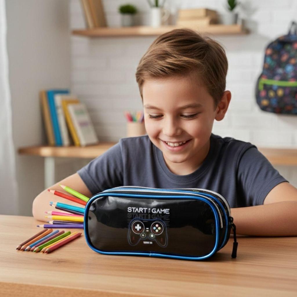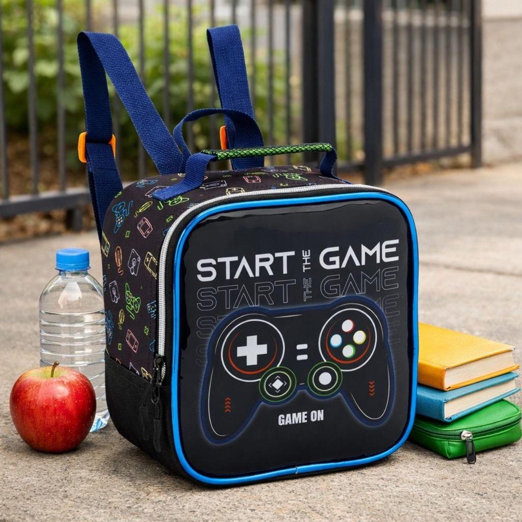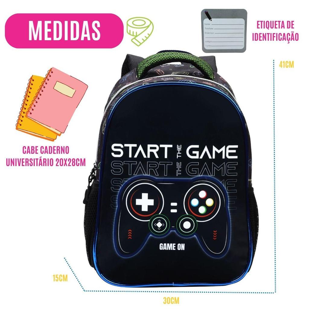 Kit Mochila de Costas Escolar Menino Gamer C/ Estojo Lancheira Térmica Material Resistente Acolchoada Estudo