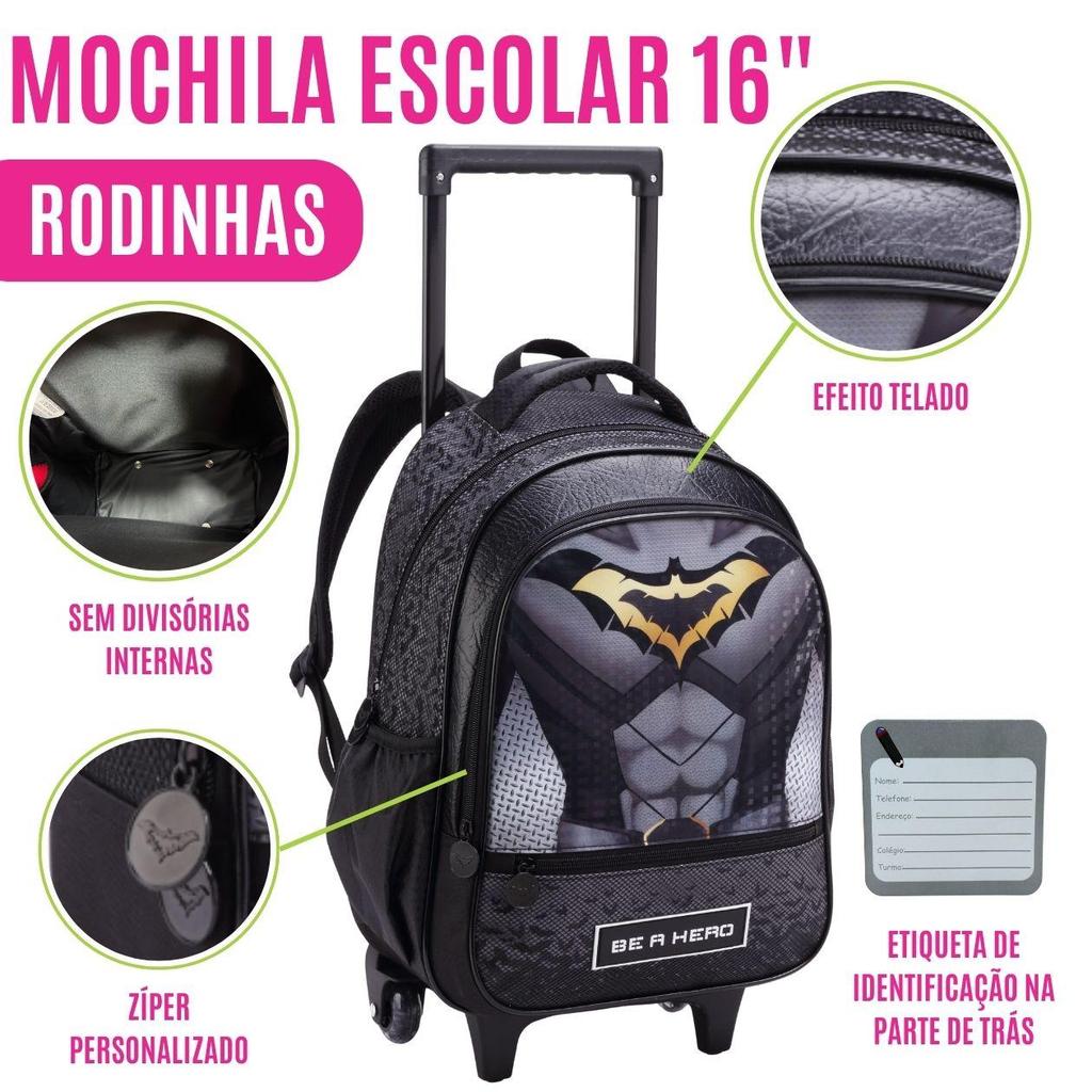 Kit Mochila Escolar com Rodinha, Estojo e Lancheira, Menino, Super Heroi