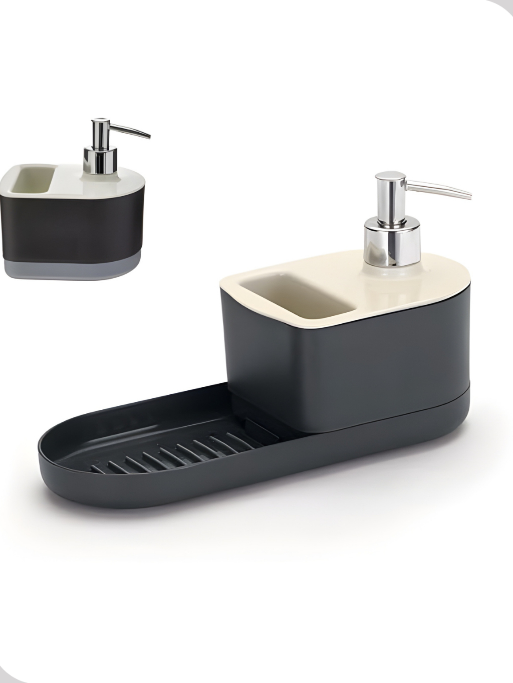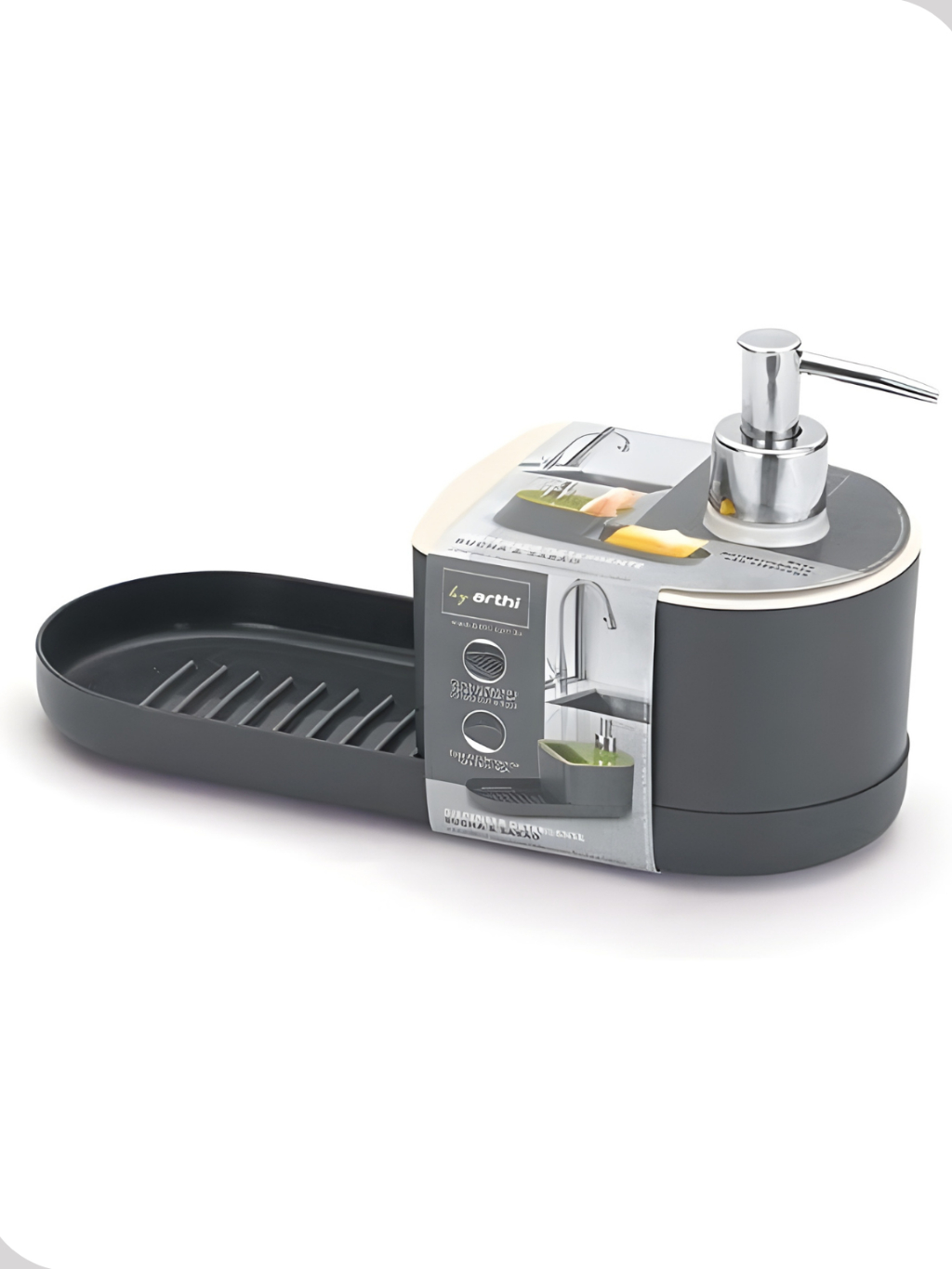 Porta Detergente e Sabonete Líquido Arth Preto – Com Porta Bucha e Dispenser para Sabão em Barra