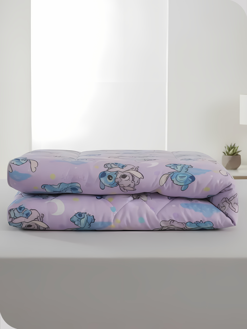 Edredom Dupla Face Solteiro Stitch Menina Feminino Azul Rosa Lepper