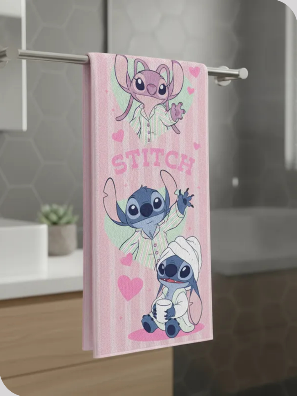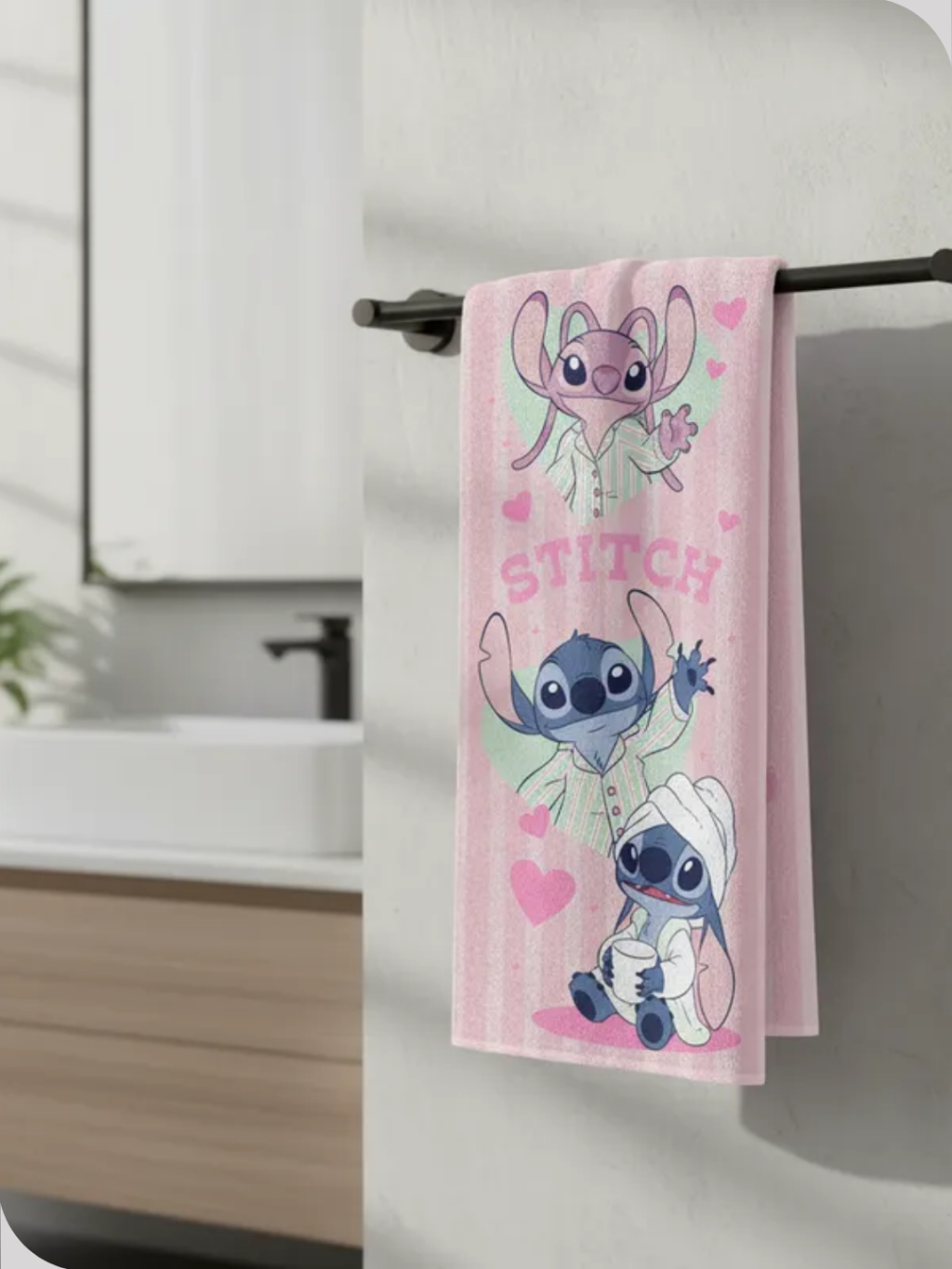 Toalha De Banho Felpuda Estampada Stitch Angel 60cm x 1,20m Rosa Lepper