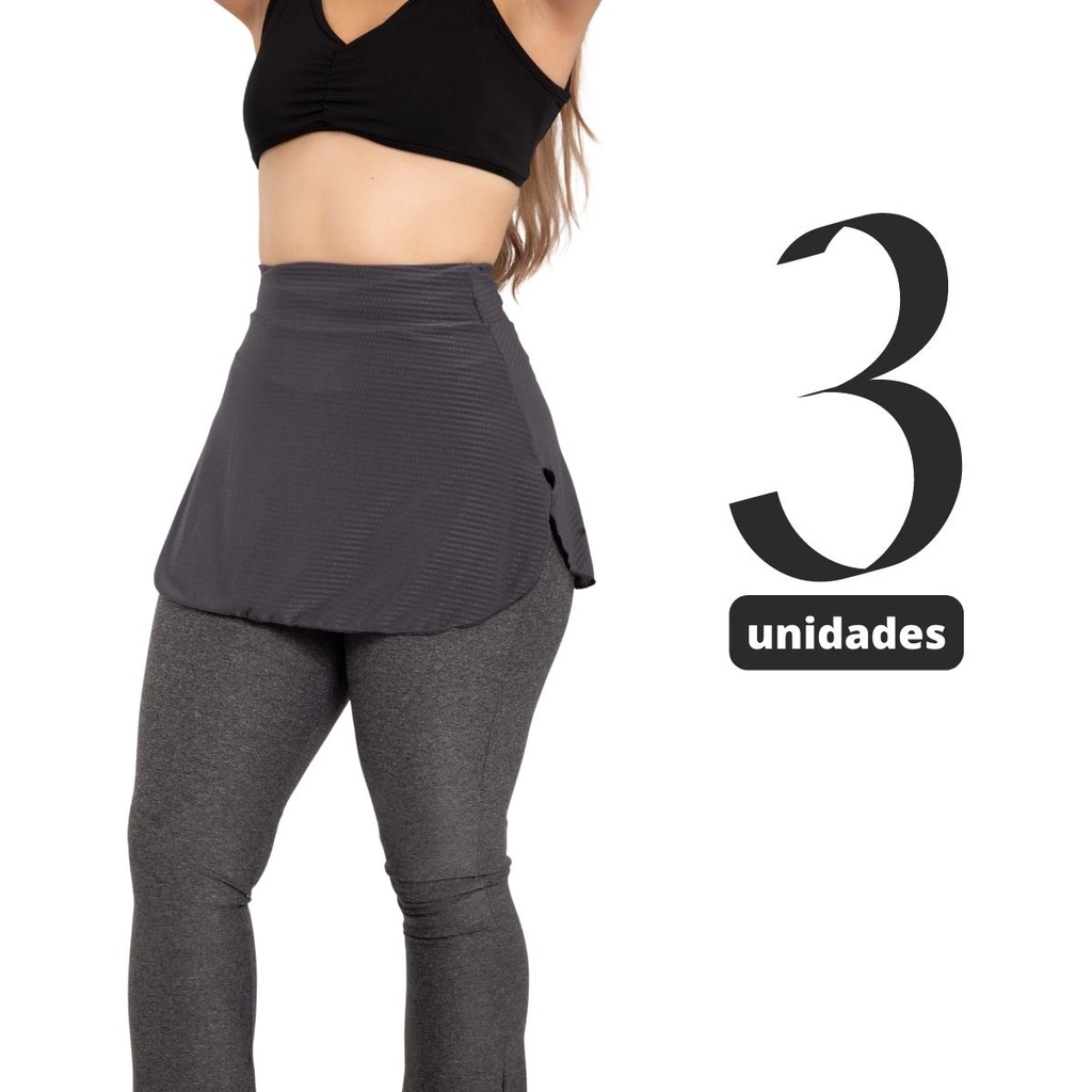 Kit 3 Saia Tapa Bumbum para Ginástica Estiloso Cardio Treino Corrida