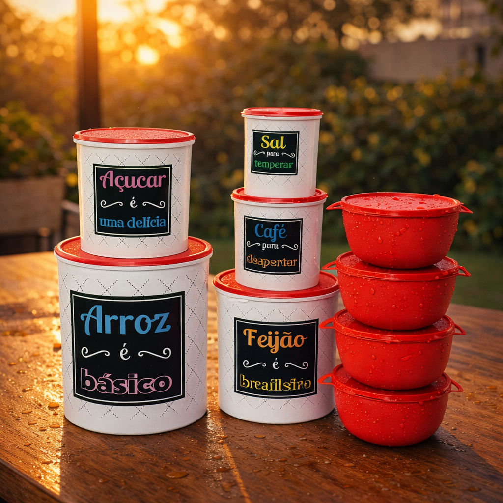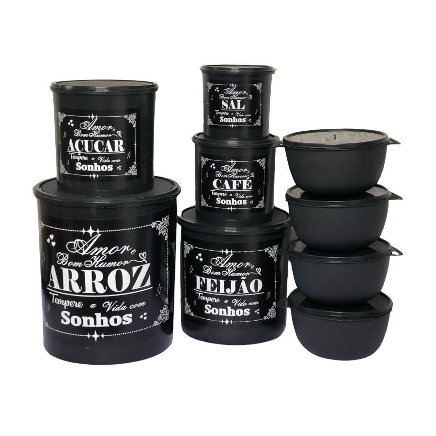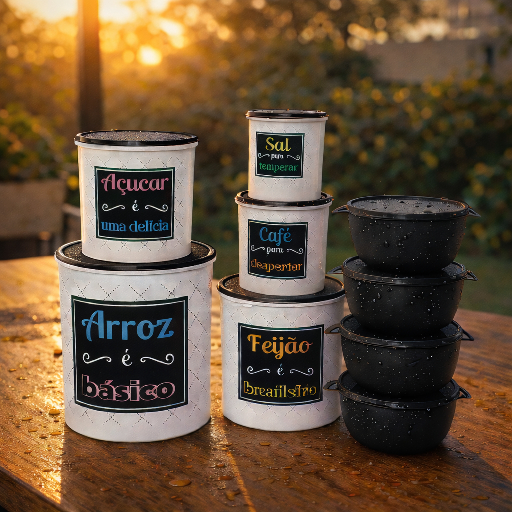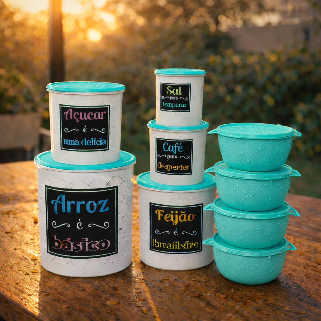Kit Completo com 9 Potes | 5 Potes de Mantimentos + 4 Bowls de 1 Litro | Ideal para Cozinha