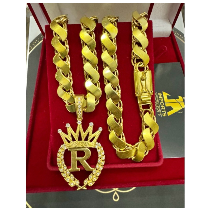 Corrente friso s 12mm 70cm + Pingente letra da sua escolha de moeda antiga