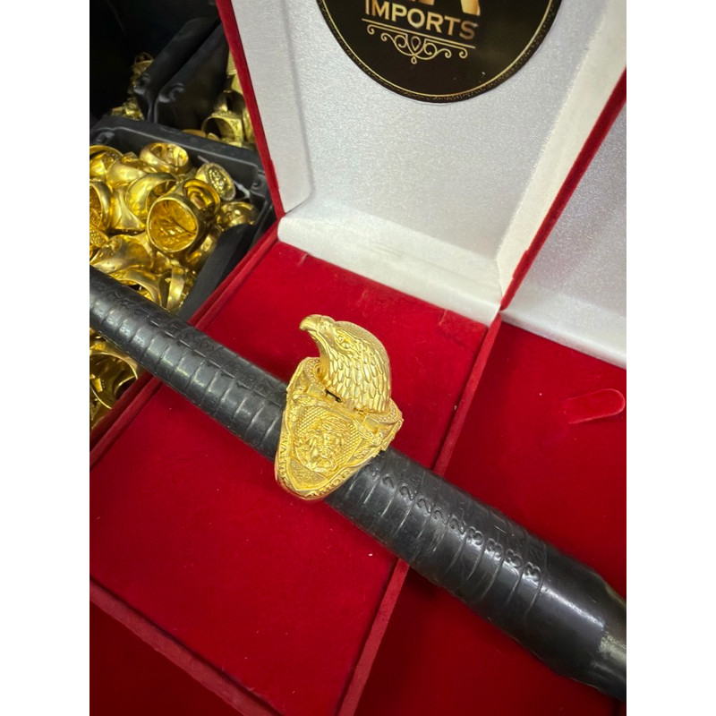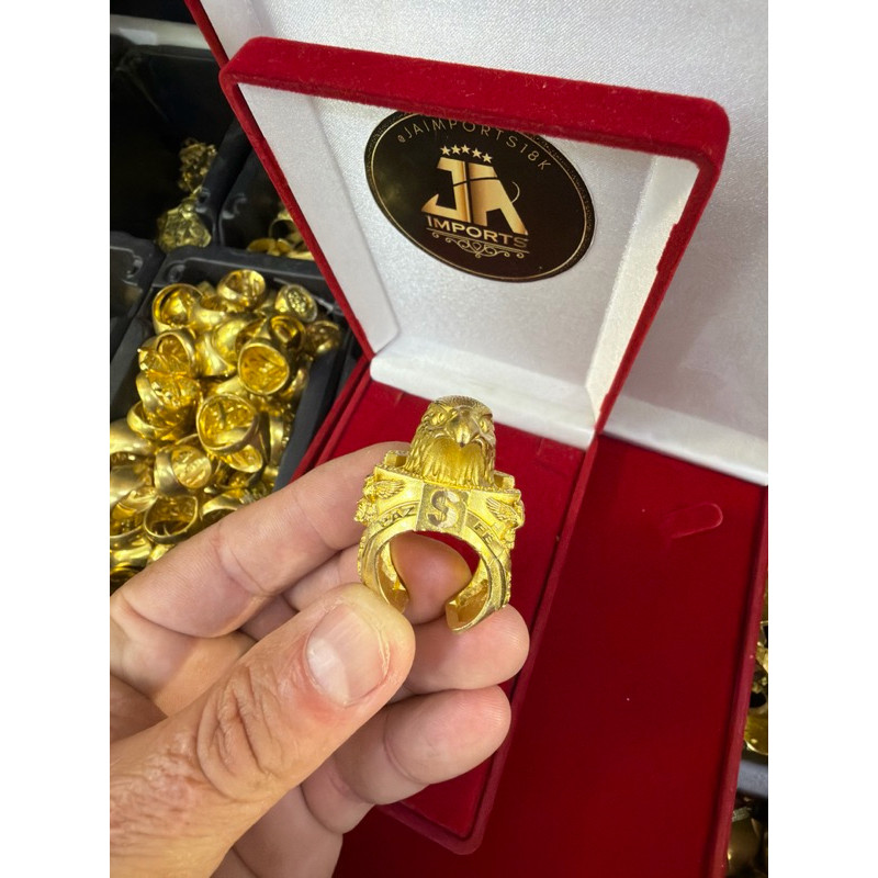 Anel águia 100% moeda antiga ajustável cor de ouro