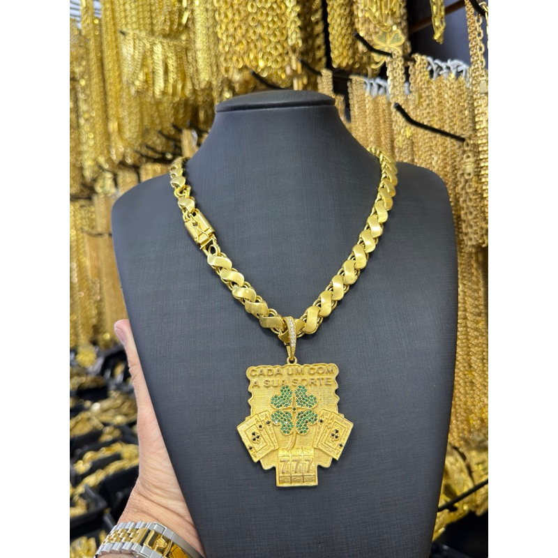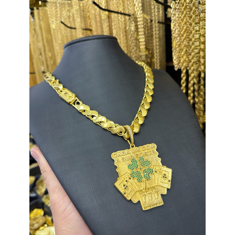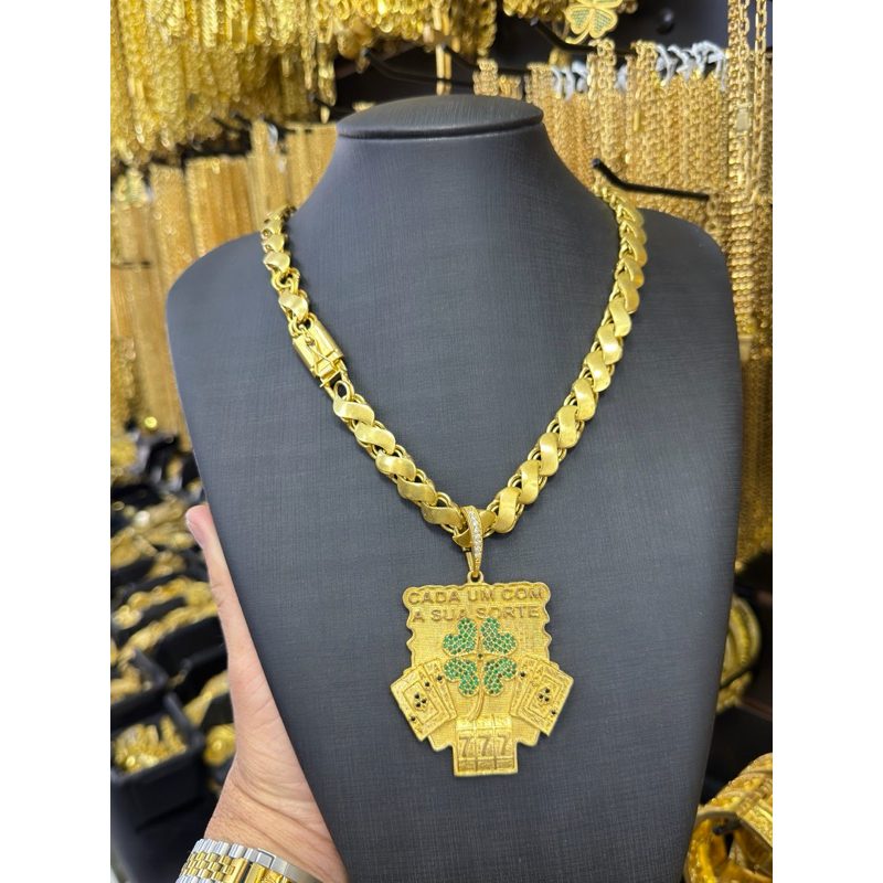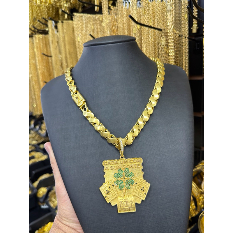 Cordão friso s 8mm 70cm + Pingente 777 de moeda antiga pura