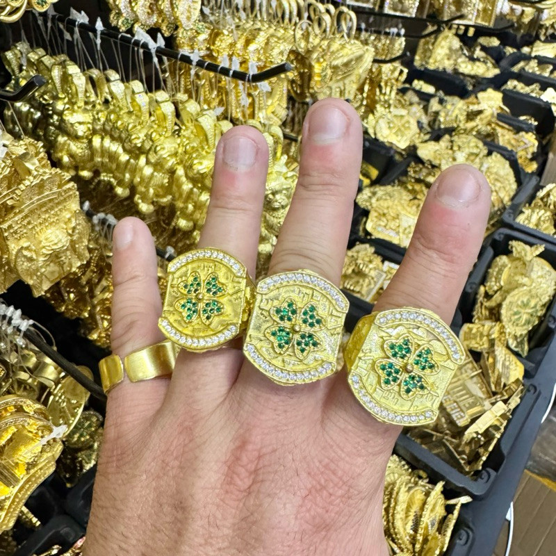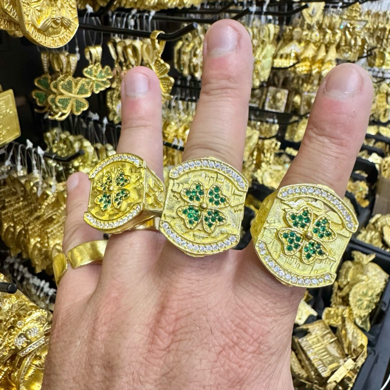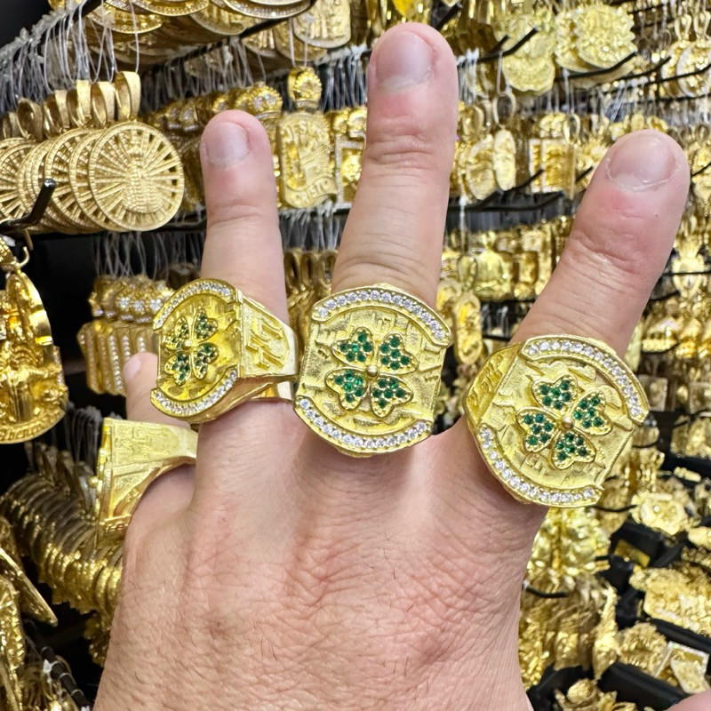 Anel trevo chefinho sorte 100% moeda antiga dedeira regulável