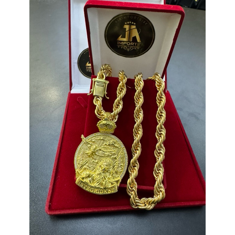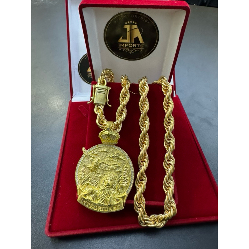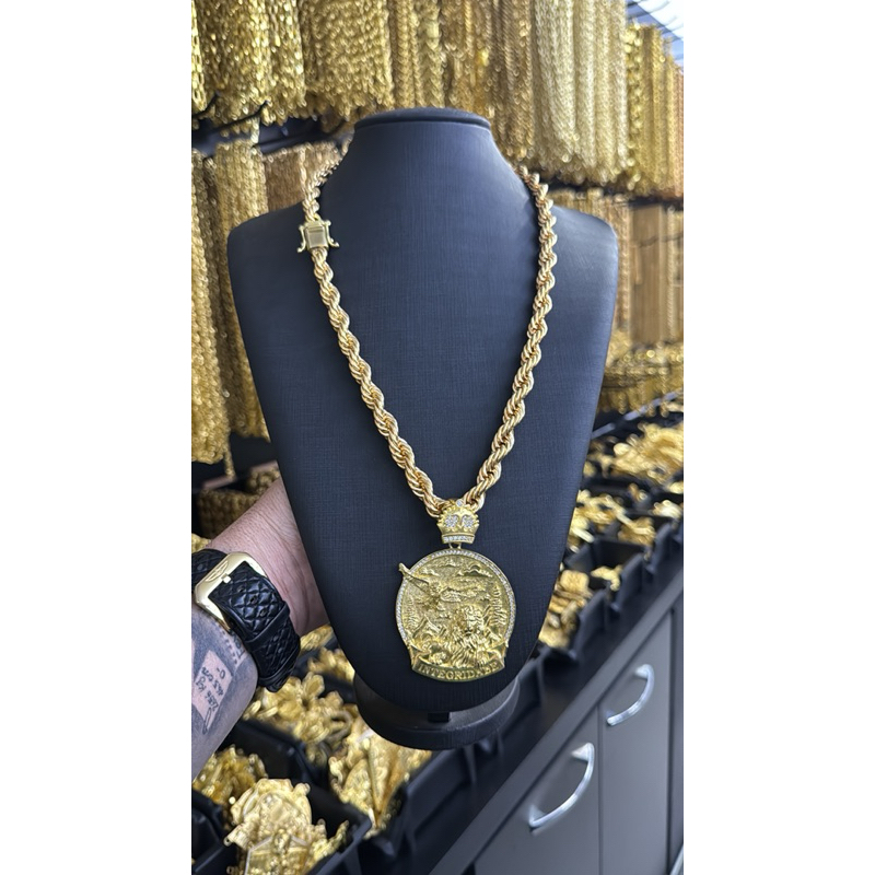 Cordão elo baiano 12mm 70cm cor de ouro 100% moeda com pingente