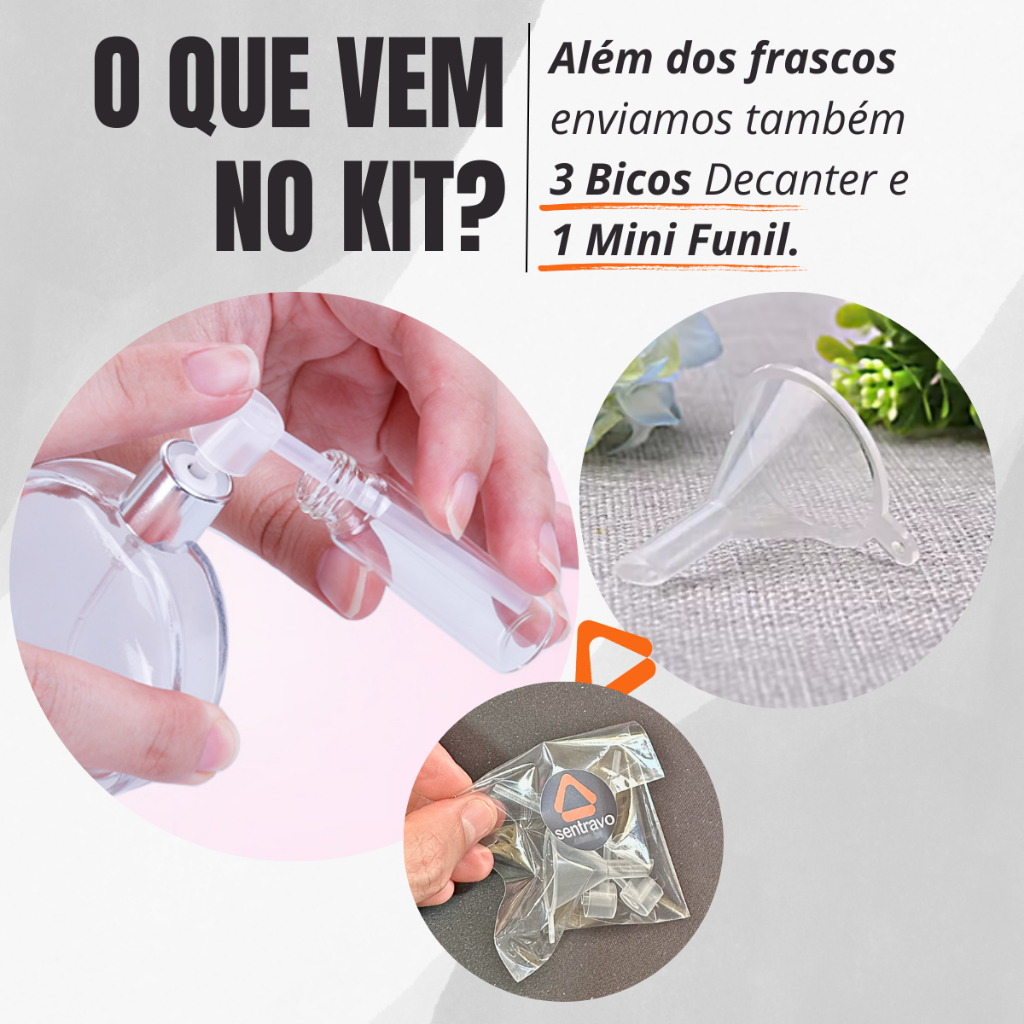 3X Porta Perfume 10ml Spray Vidro Kit Com Bico Decanter e Mini Funil Frasco Recarregavel Portátil