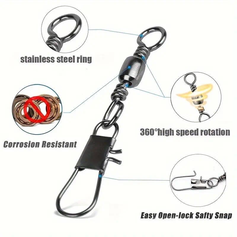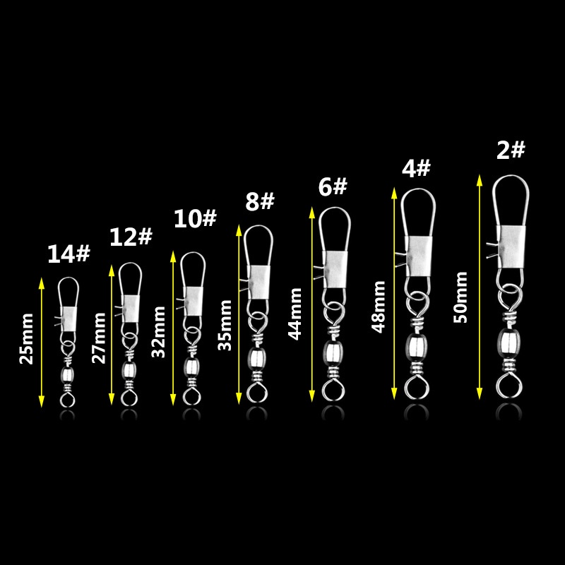 50 Pçs/Saco Giros De Aço Inoxidável Conector De Pesca Pino Rolamento Giratório Com Snap Anzol Isca Enfrentar Acessórios