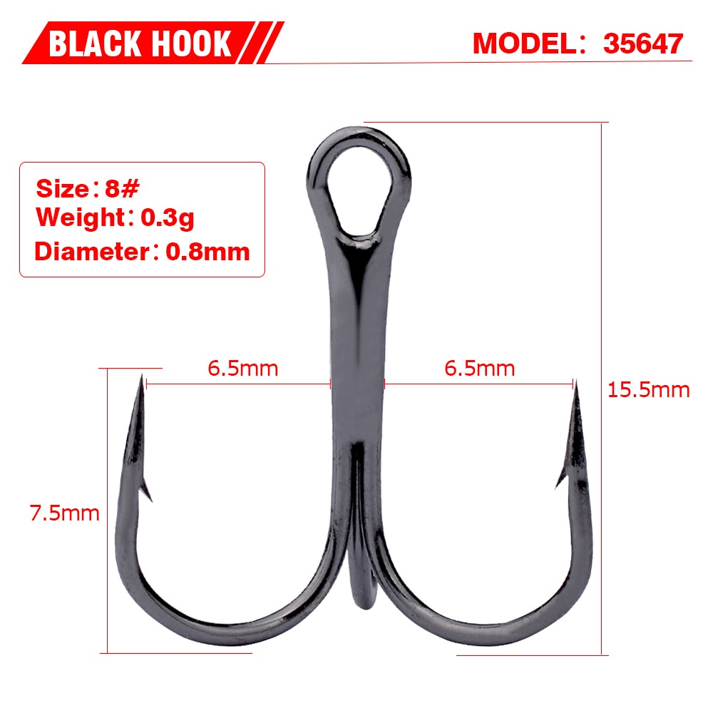 50Pcs Agudos Ganchos De Pesca Gancho De Carbono De Alta Ganchos Sólidos 2/4/6/8/10/12 /14# Triplo Farpado Anzóis De Aço