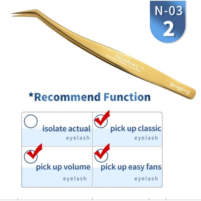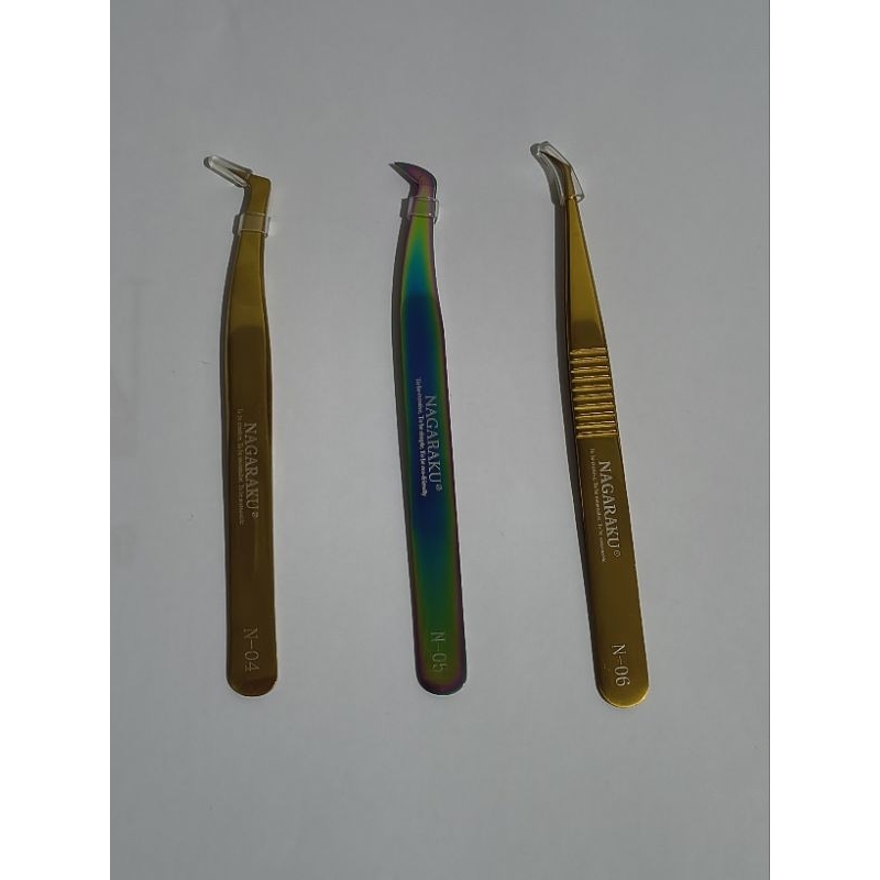 Nagaraku Pinça de Cílios Profissional de Aço Dourada Extensão de Cílios Lash Design