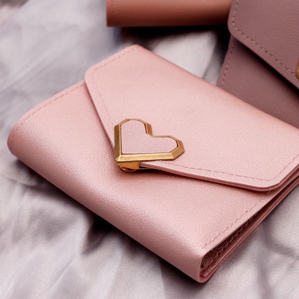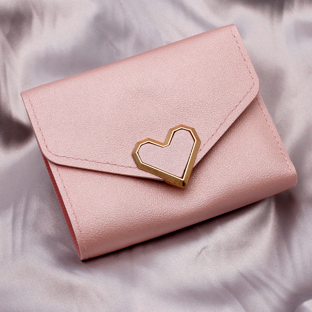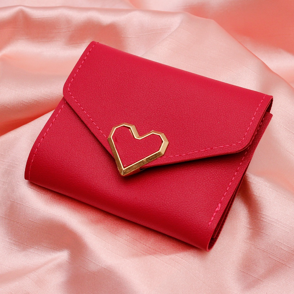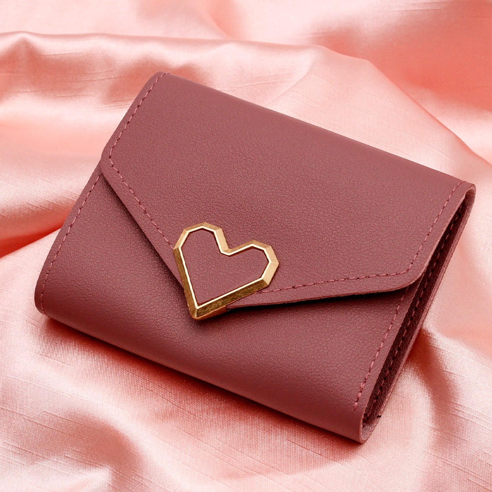 Carteira de Couro com Fecho em formato de Coração/Carteira feminina