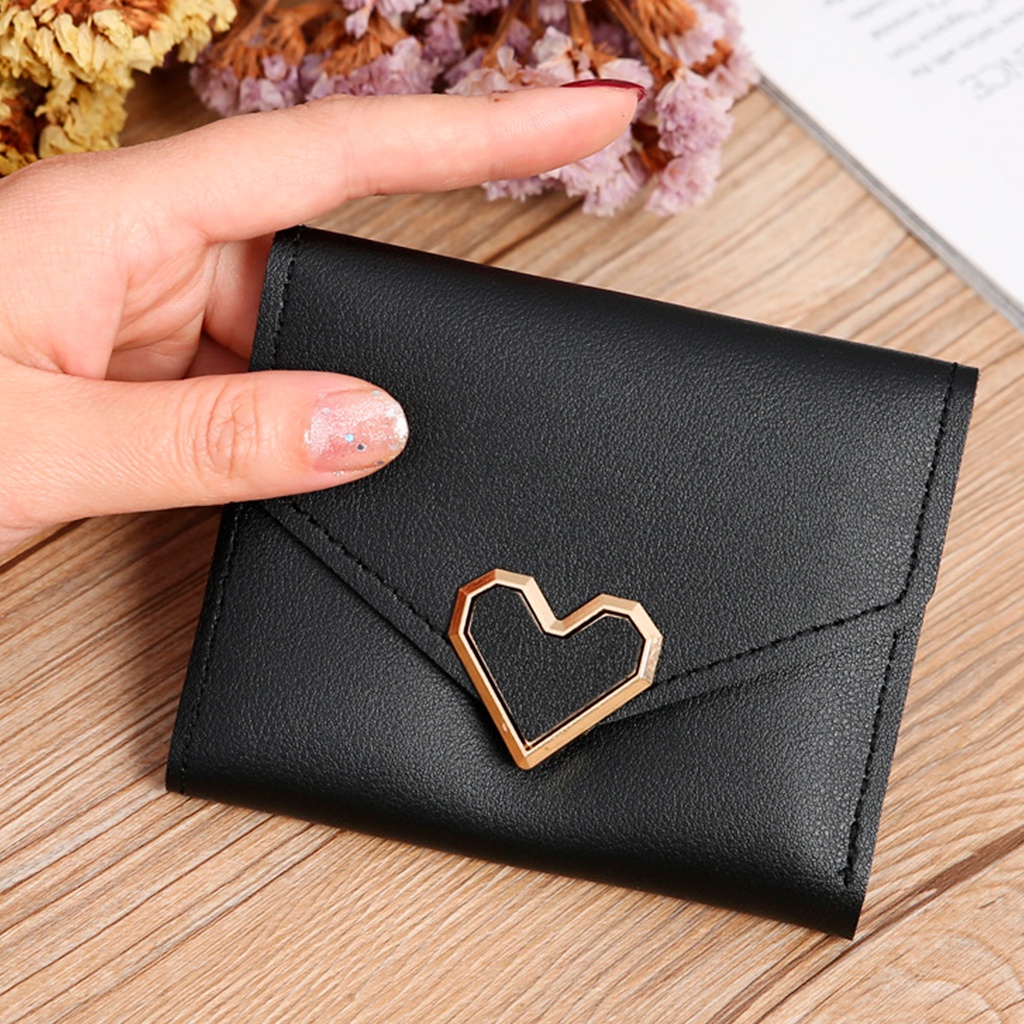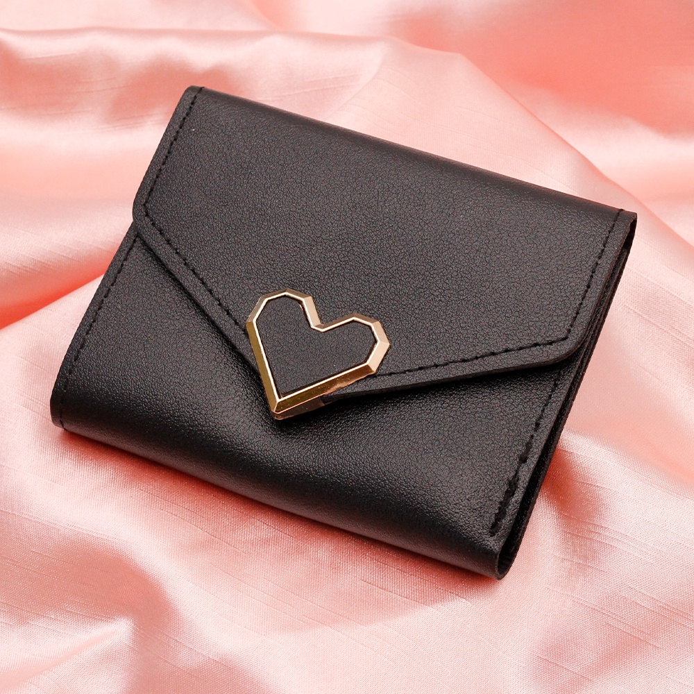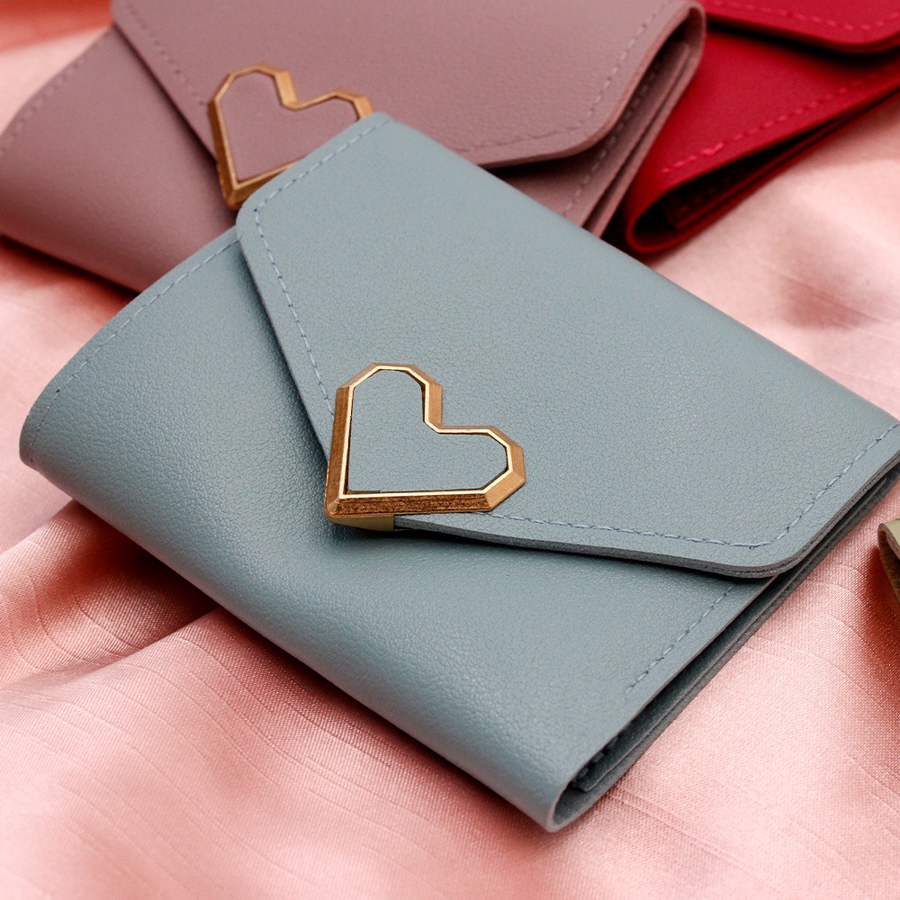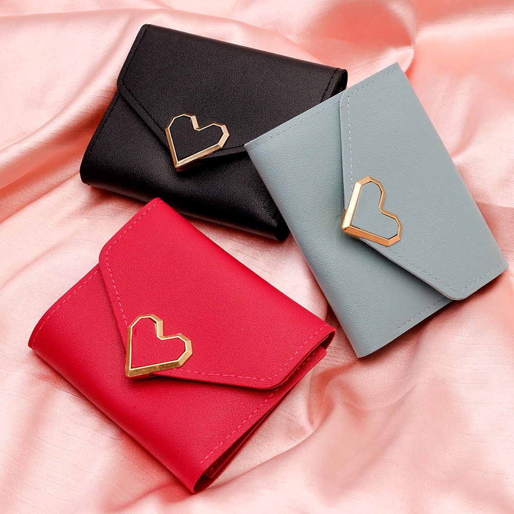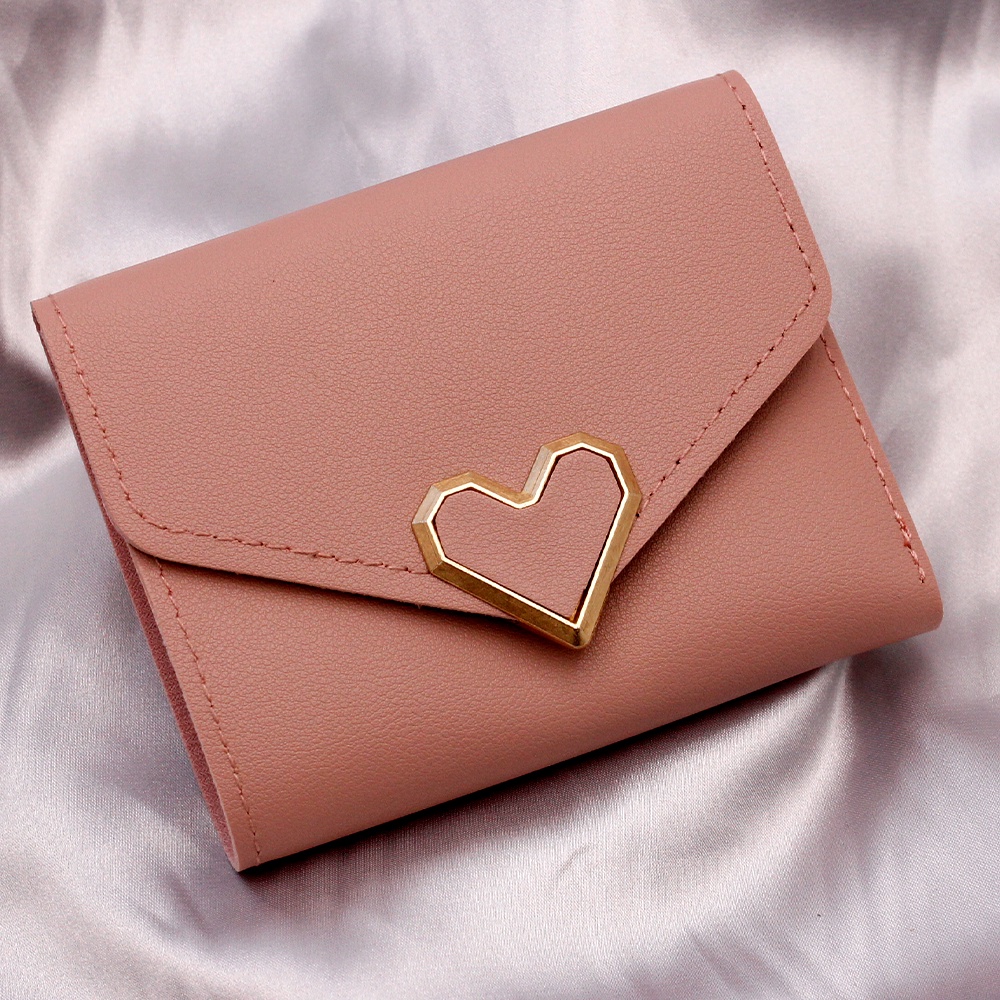 Carteira de Couro com Fecho em formato de Coração/Carteira feminina