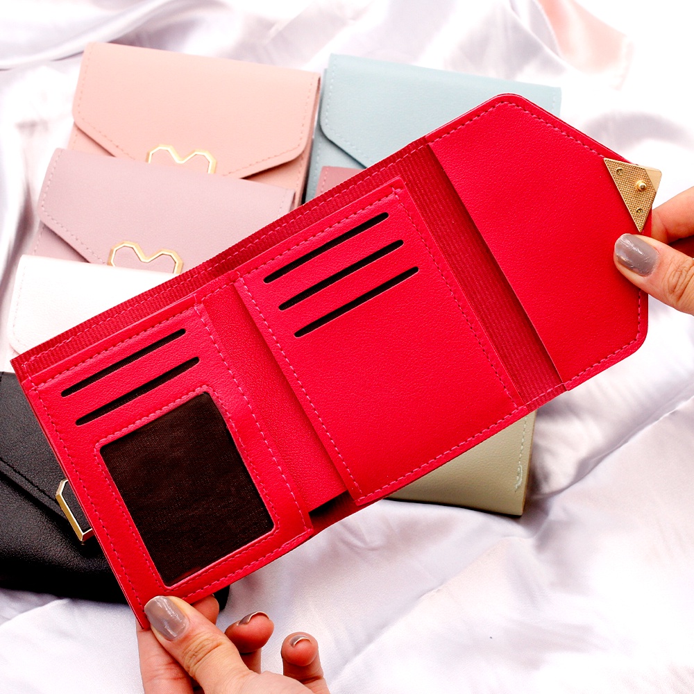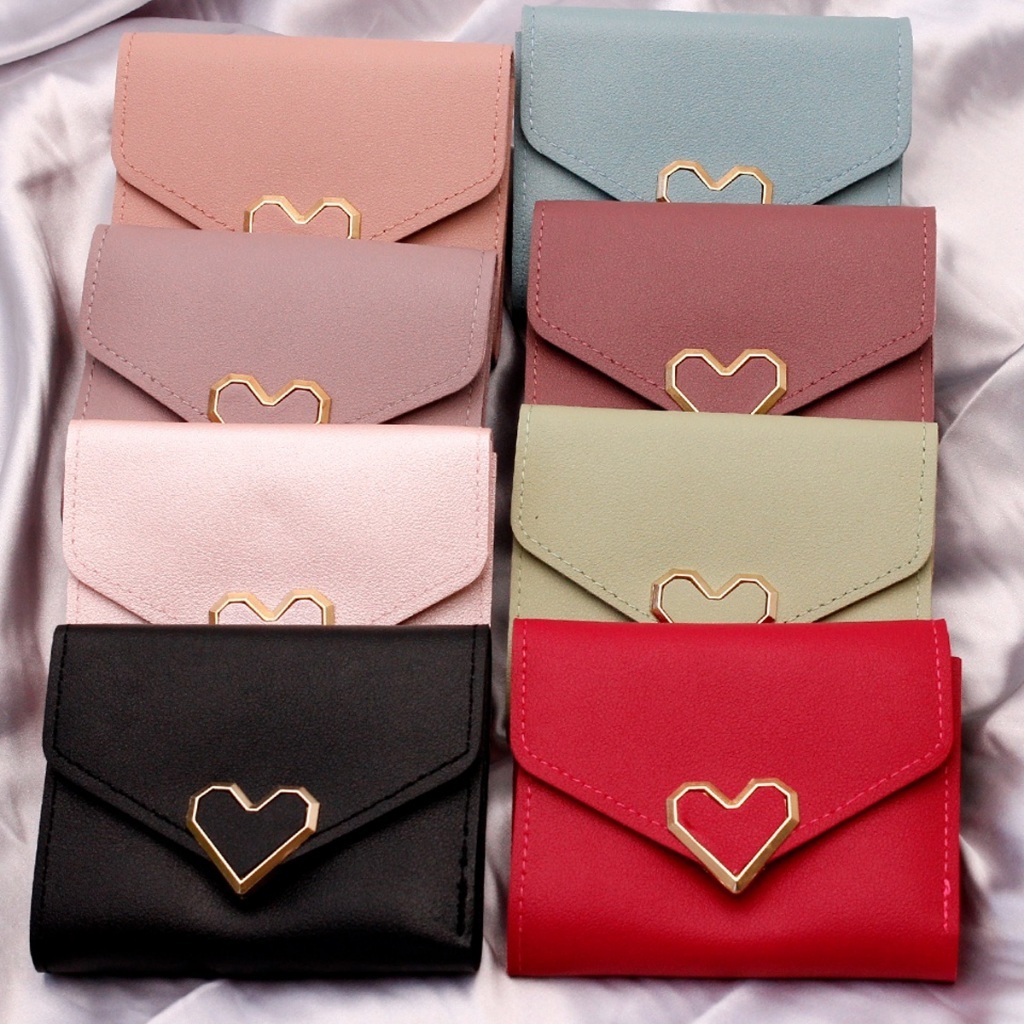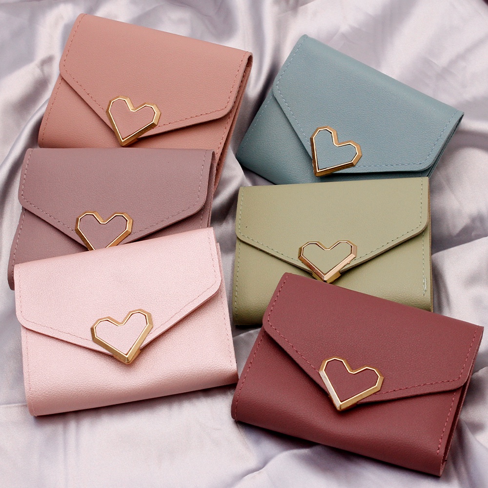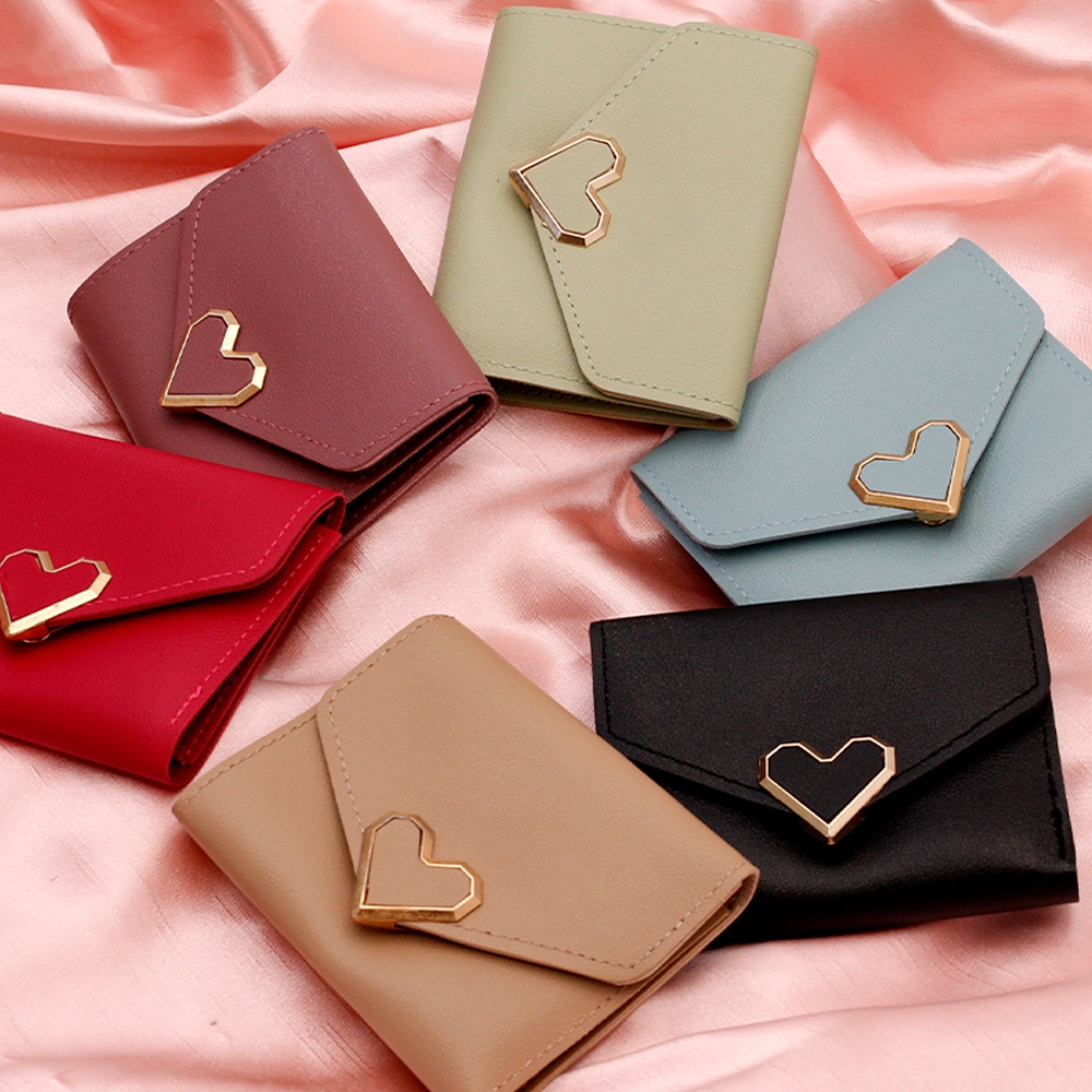 Carteira de Couro com Fecho em formato de Coração/Carteira feminina
