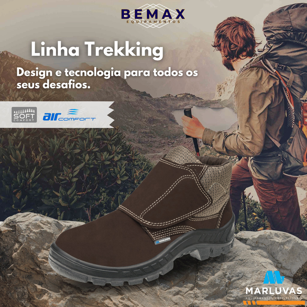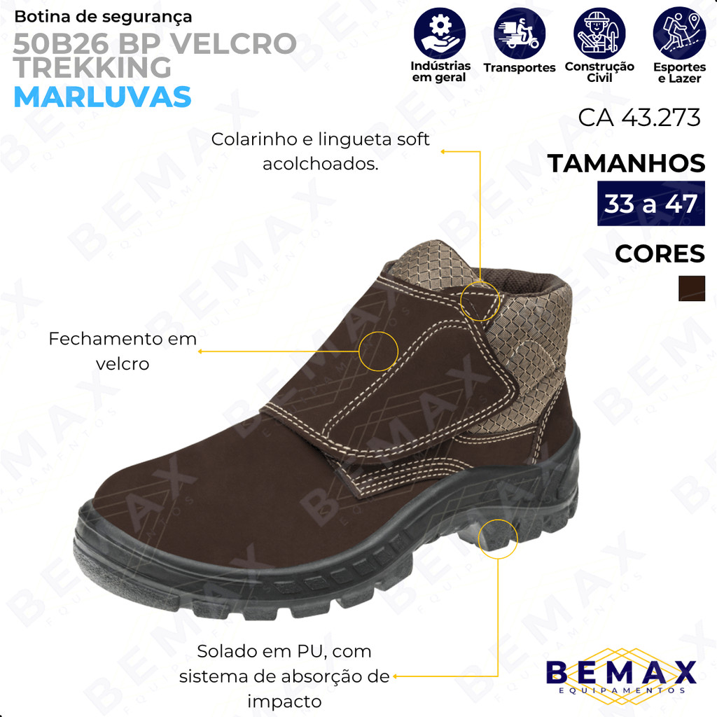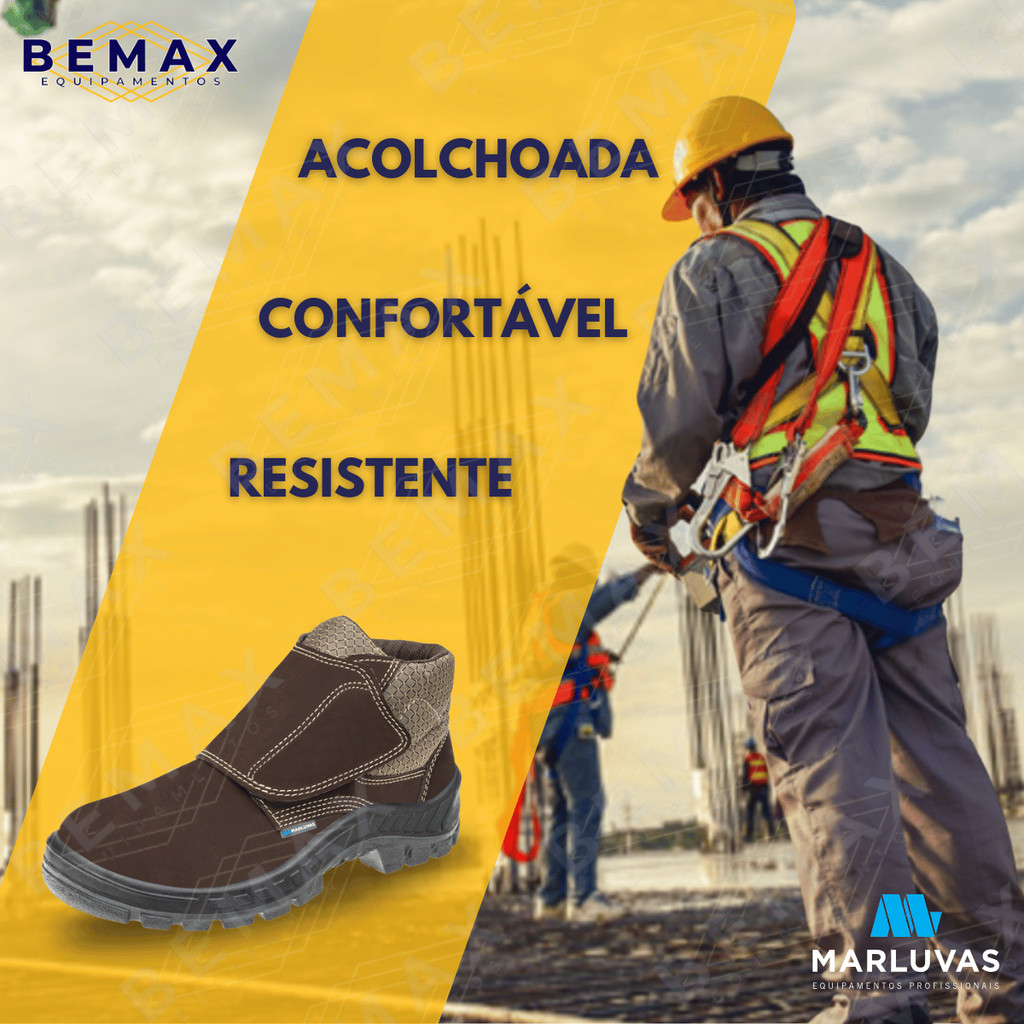 Bota Botina de Segurança Marluvas Couro Nobuck Velcro 50b26 BP EPI CA 43273