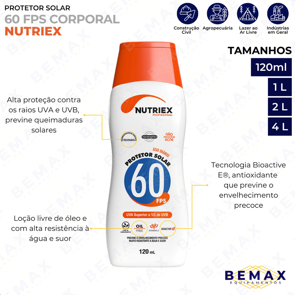 Protetor Solar Nutriex Bloqueador UVA UVB Fps 60 120ml Toque Seco Proteção Raios Ultravioleta