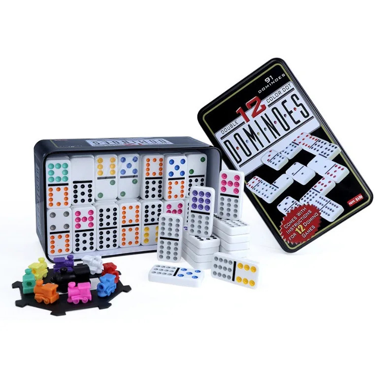 Jogo Dominó Mexicano Double 12 Cores 91 Peças Lata Decorada