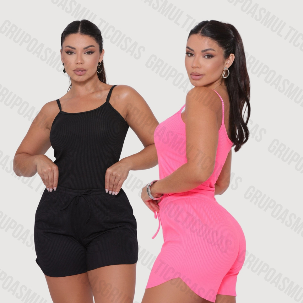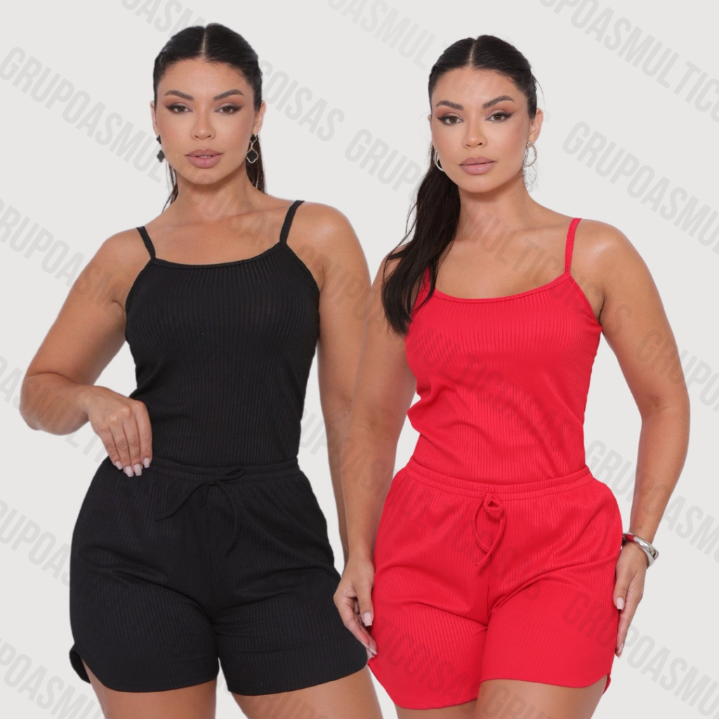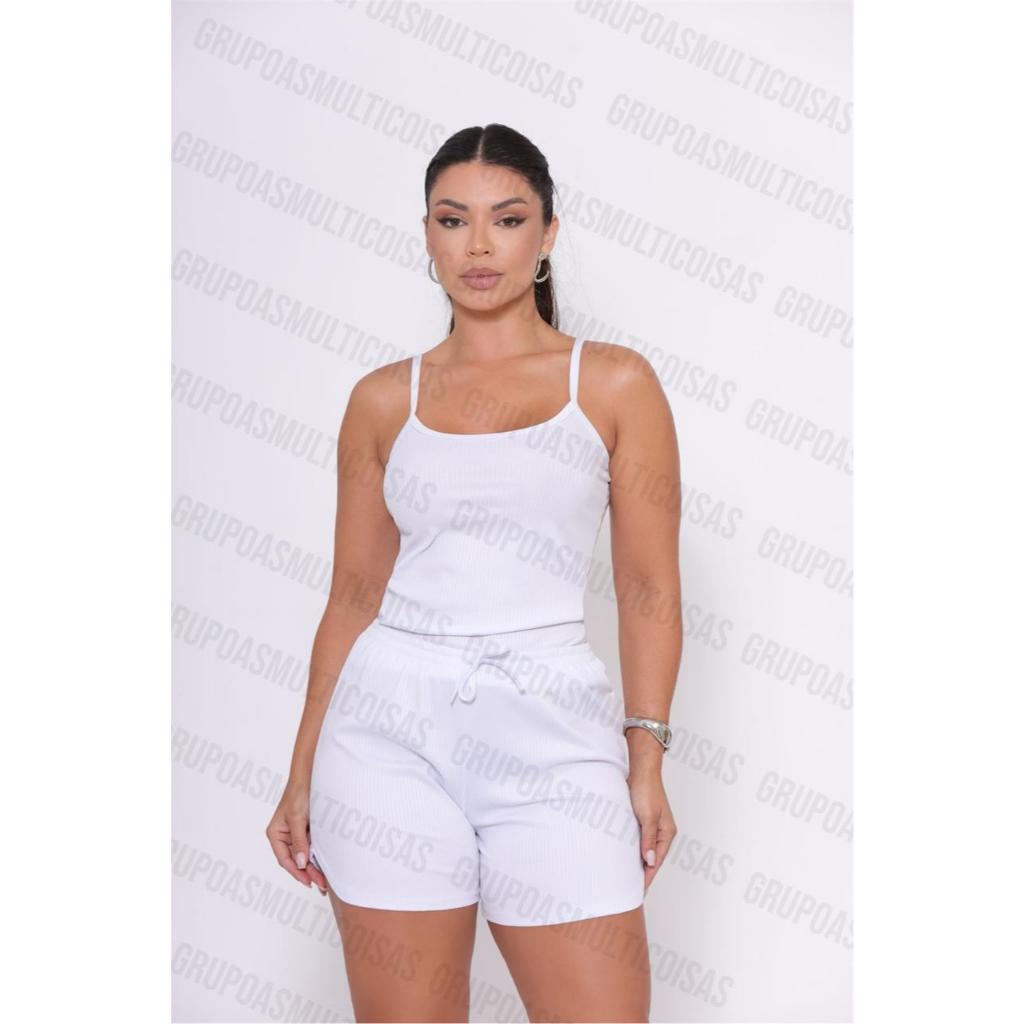 CONJUNTO MALHA CANELADO FEMININO REGATINHA DE ALCINHA E BERMUDINHA SHORT USO CASUAL