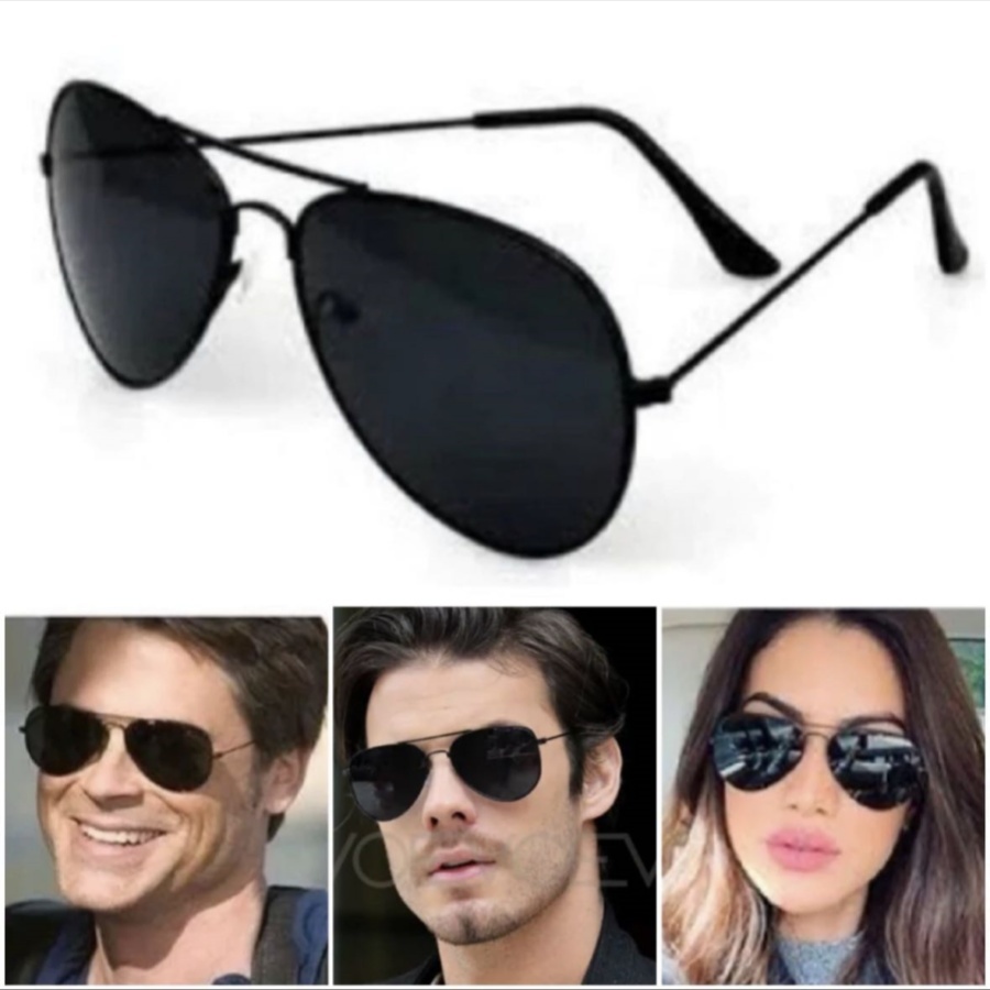 Óculos De Sol Aviador Preto Preto Clássico Unissex Lente De Cristal UV400 Moderno Promoção