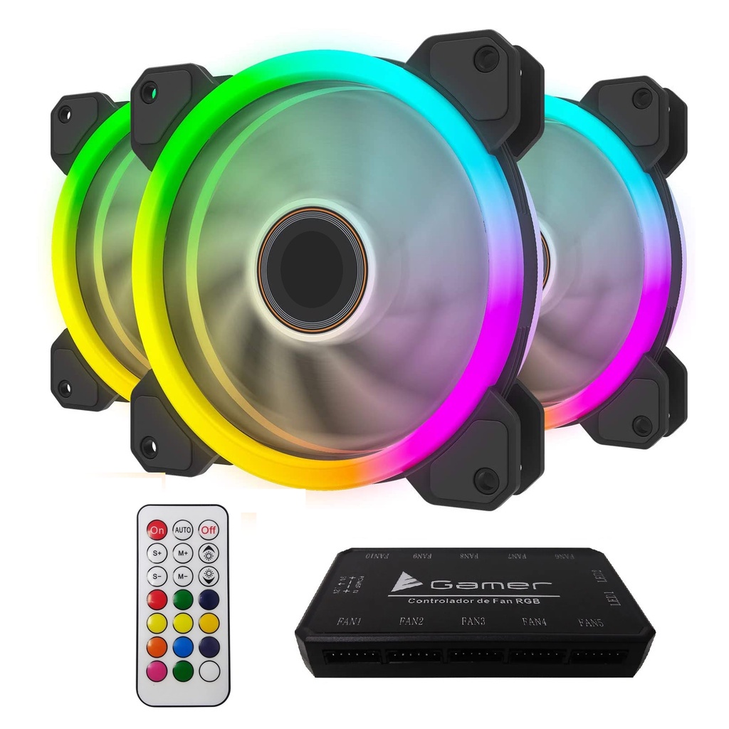 Kit 3 Cooler Fan Rgb Gamer Dupla Face 120m Com Controladora