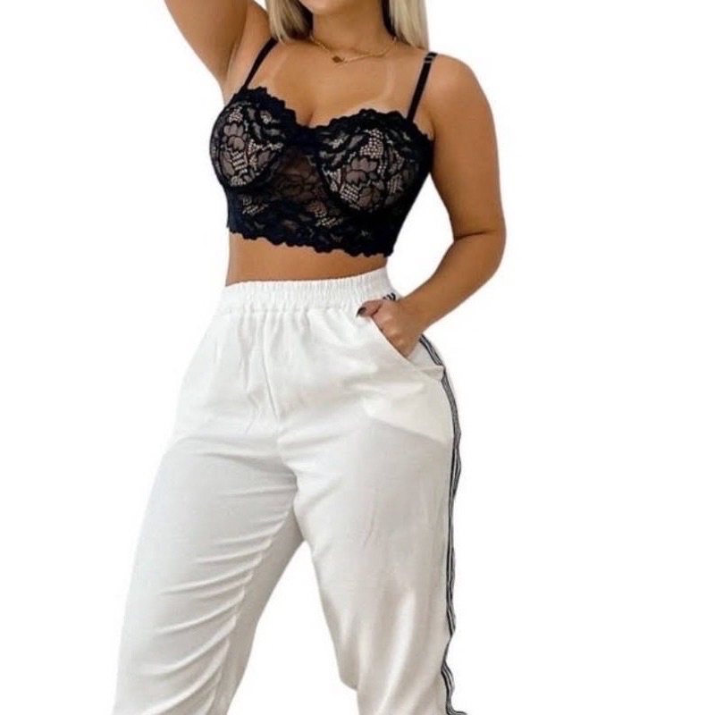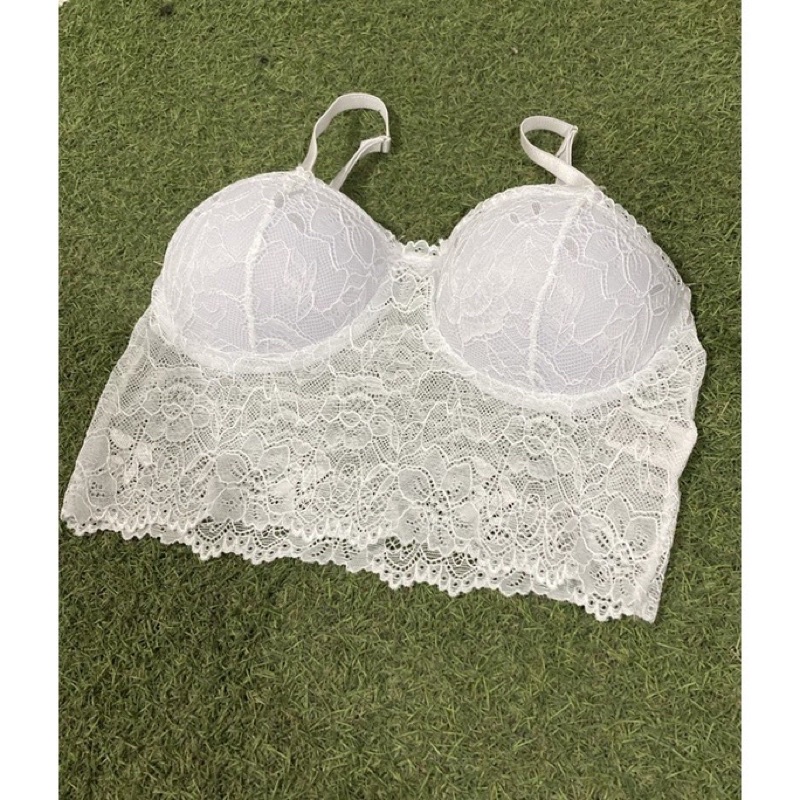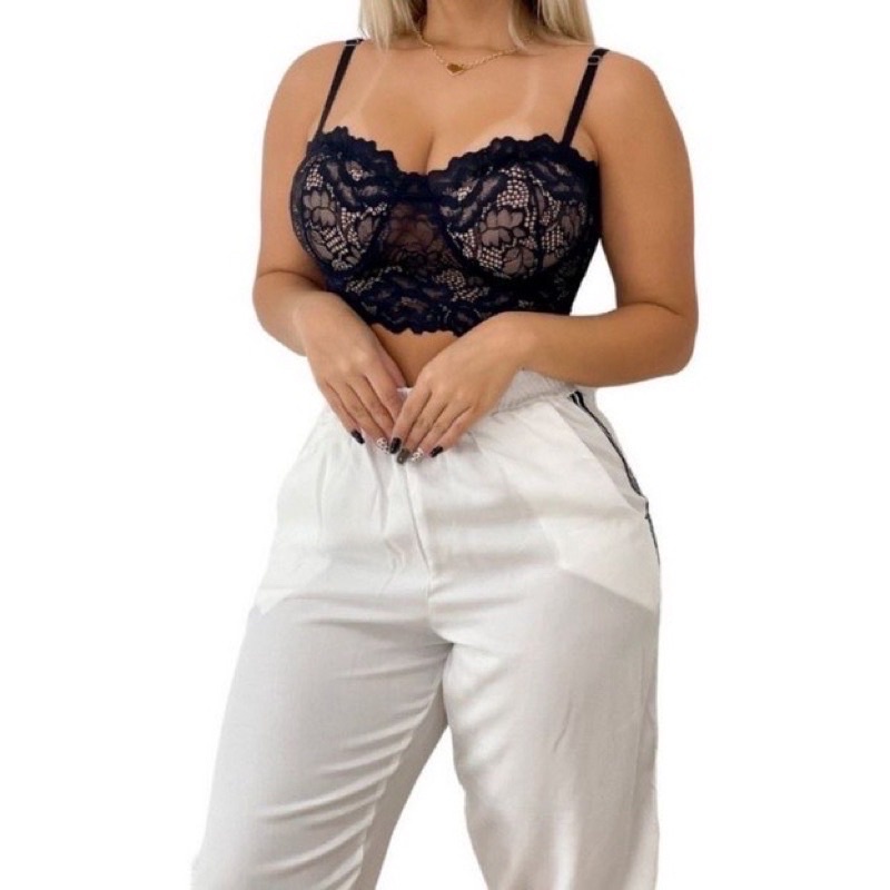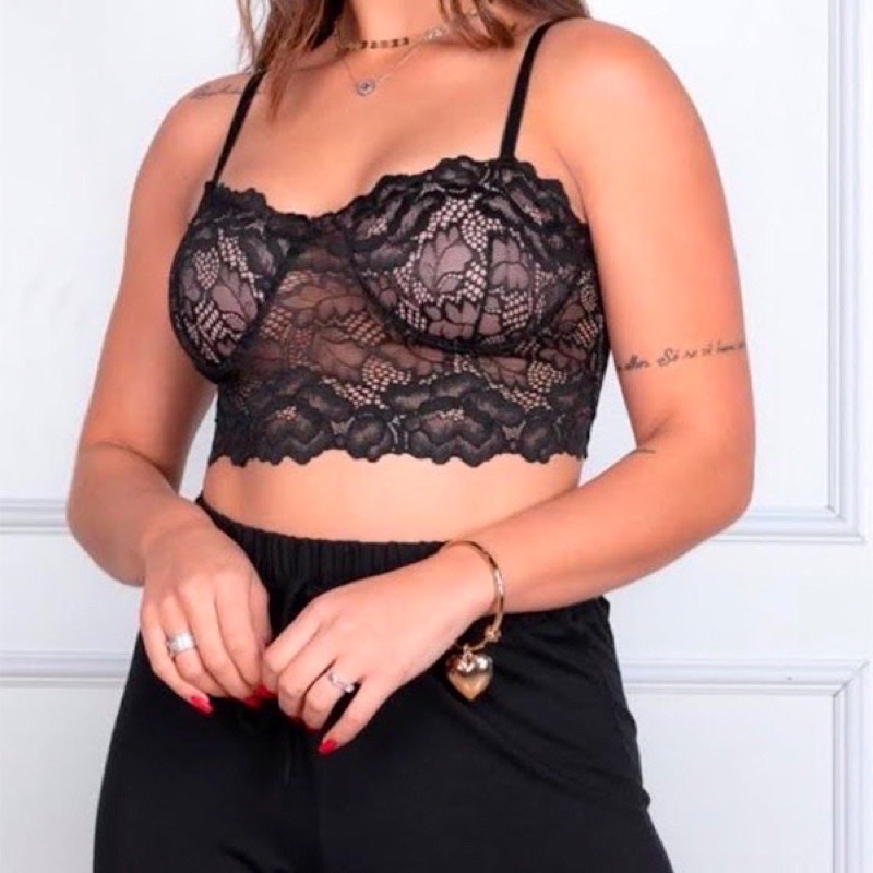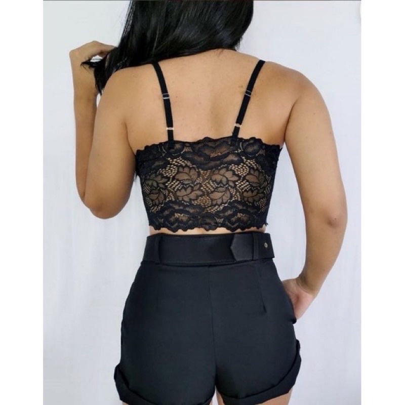 Cropped Top Meia Taça de Renda com Bojo e Alça Regulável - Confortável Casual Sutiã - Moda Blogueira feminina