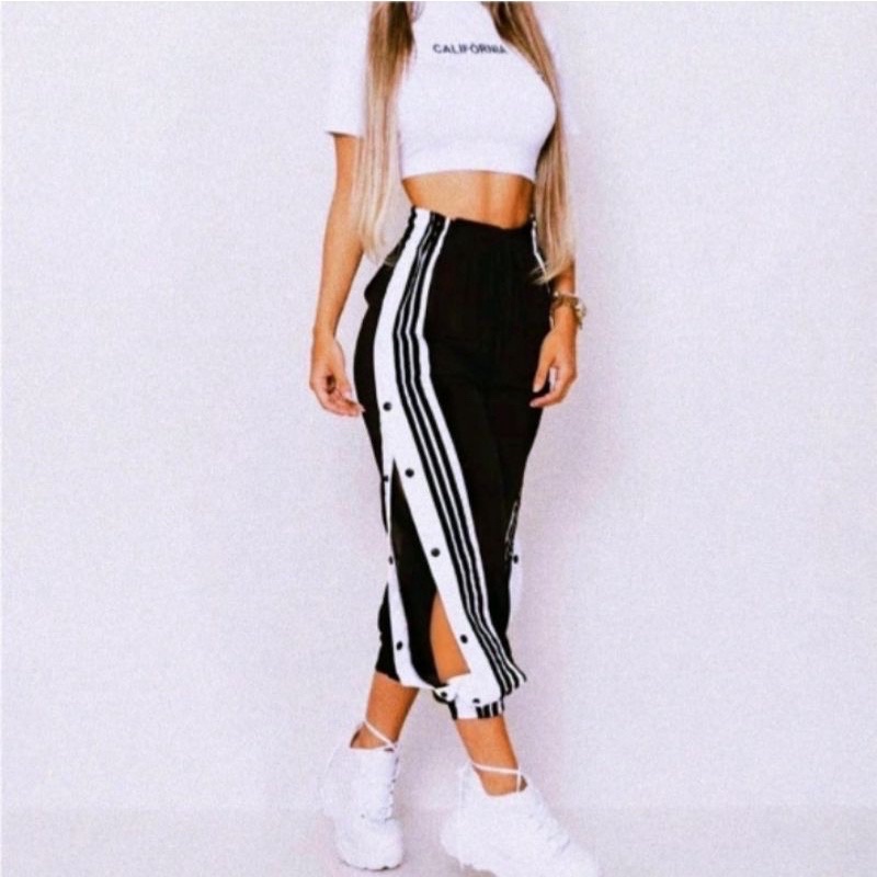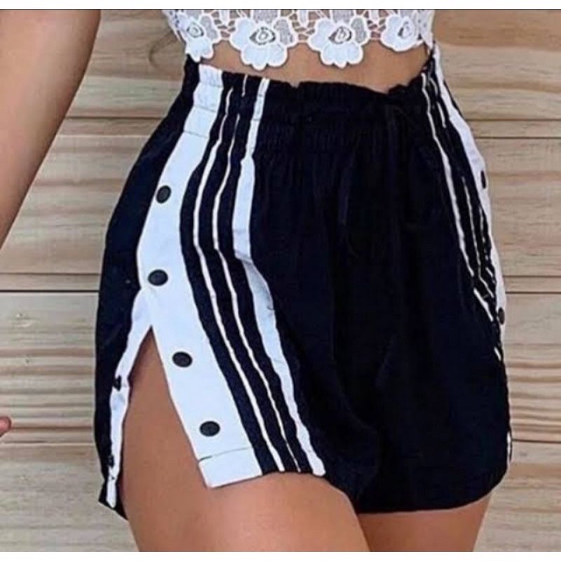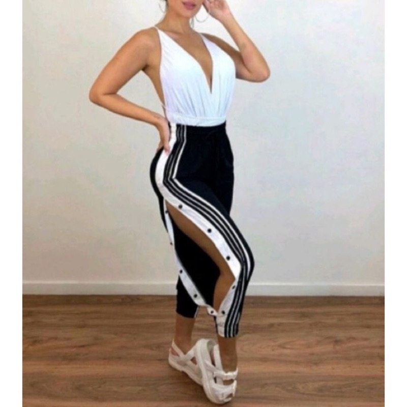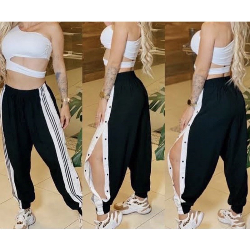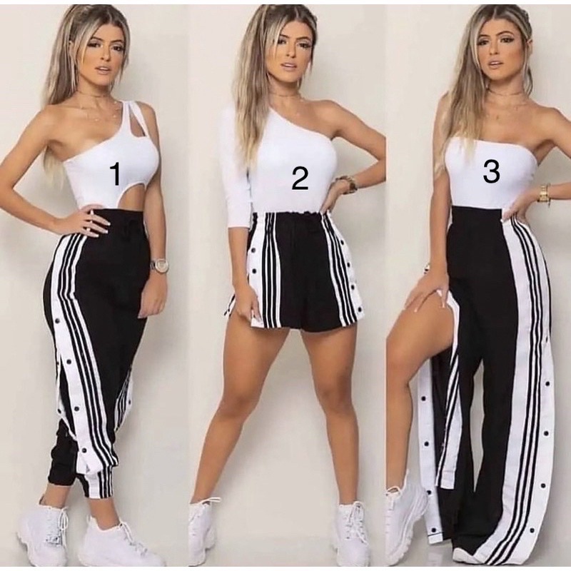 1- Calça Pantalona 2- Jogger 3- Short Botões Laterais Listras Fenda Viscose Moda Blogueira
