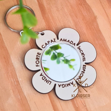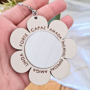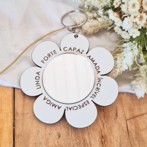Kit 20, 30 ou 50 Chaveiros com Espelho Kit Chaveiro Flor em MDF com Acrílico Espelhado • Dia das Mães