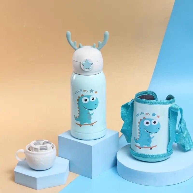 Garrafa Térmica Infantil de 500 ml Com Alça Bolsa De Armazenamento com Canudo