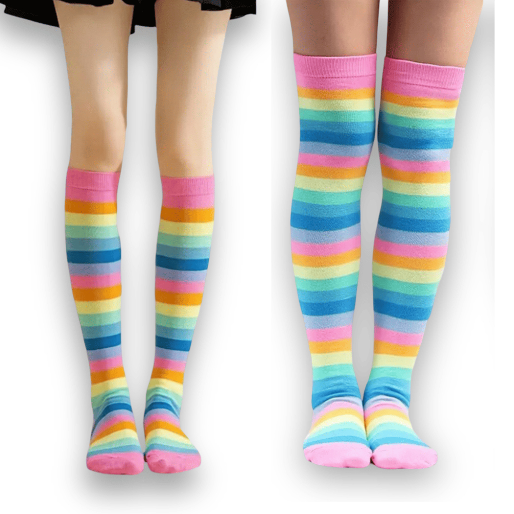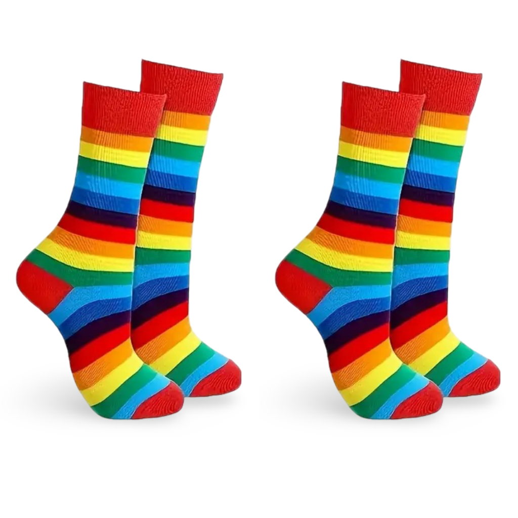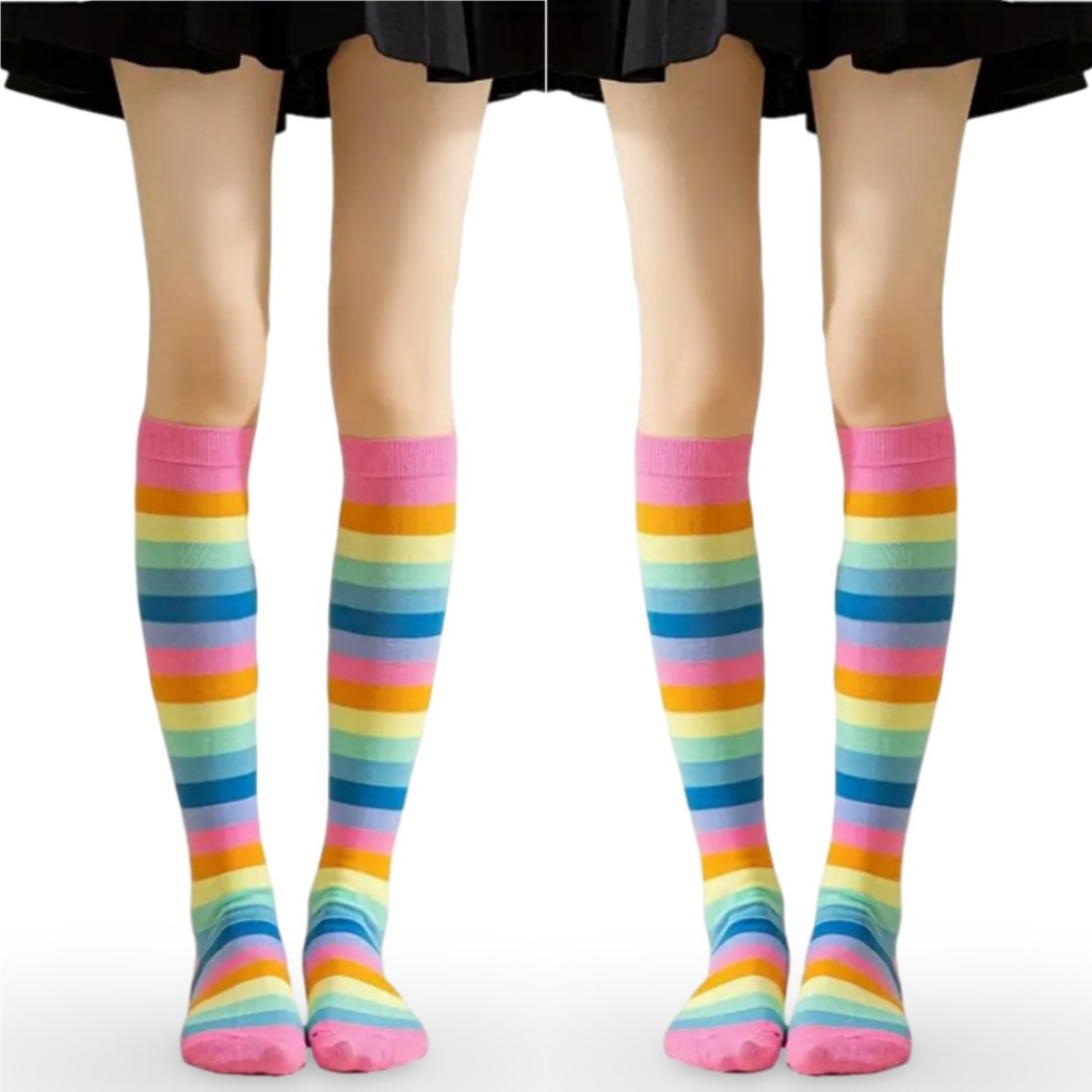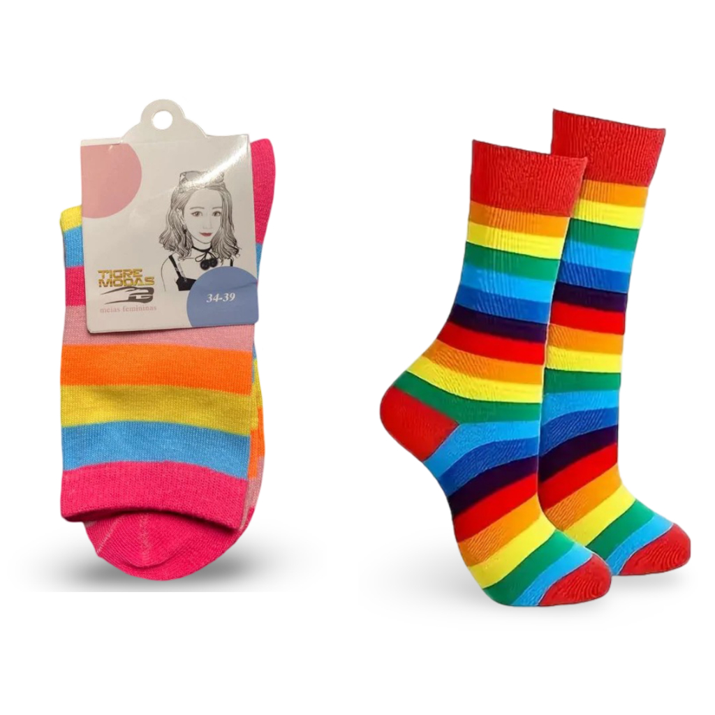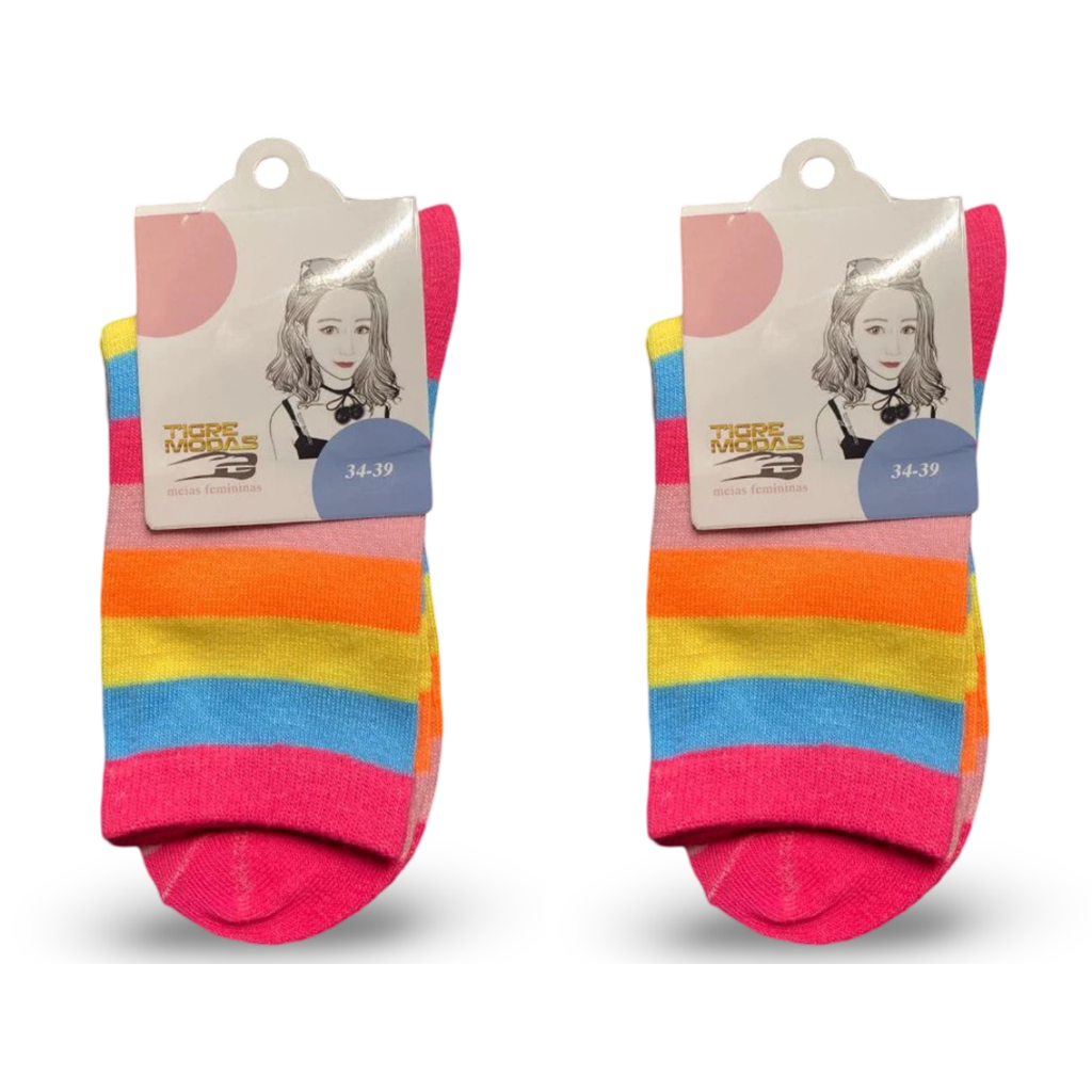 🧦Kit 2 Pares Meias Listradas Coloridas Arco-Íris Divertidas Conforto e Estilo para Todas as Idades🌈