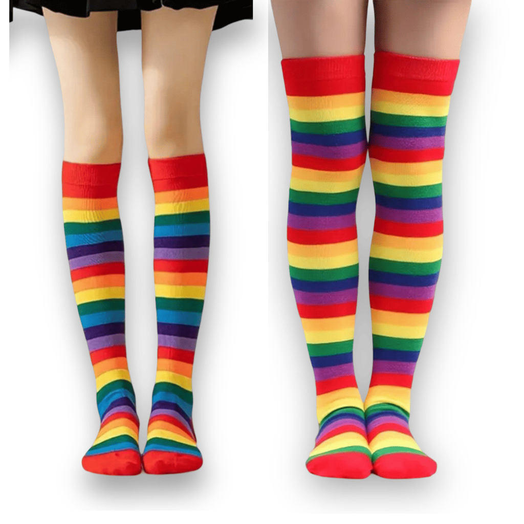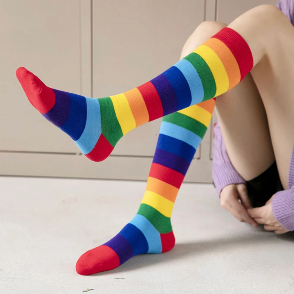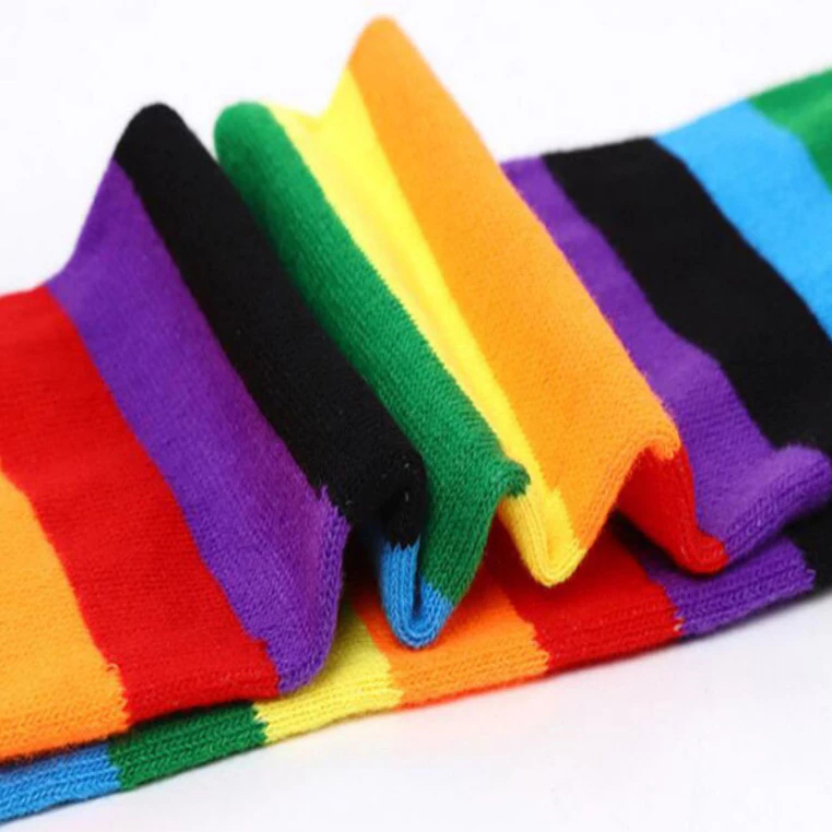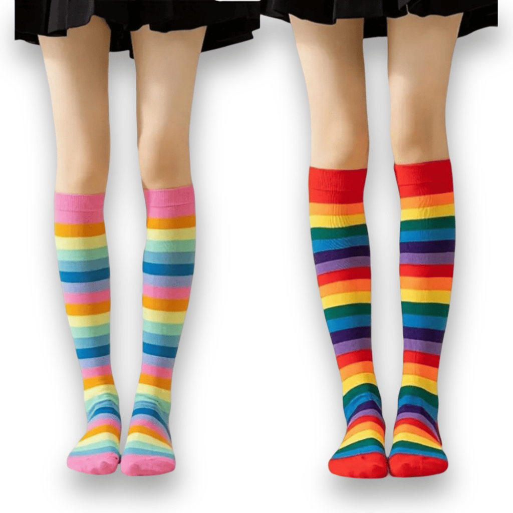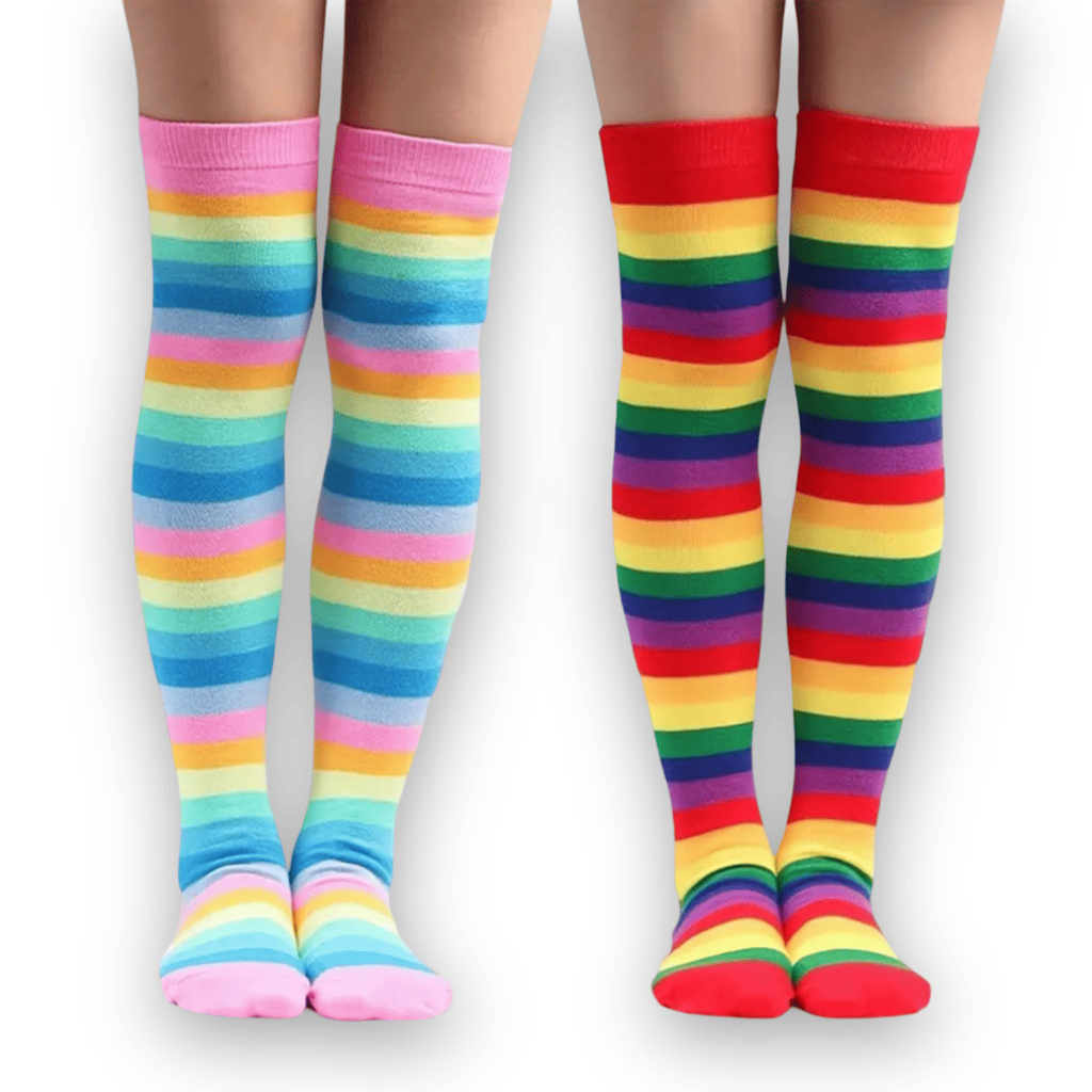 🧦Kit 2 Pares Meias Listradas Coloridas Arco-Íris Divertidas Conforto e Estilo para Todas as Idades🌈