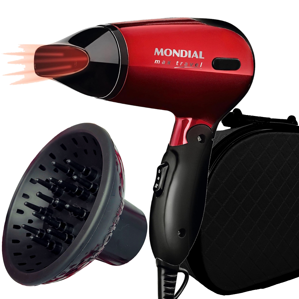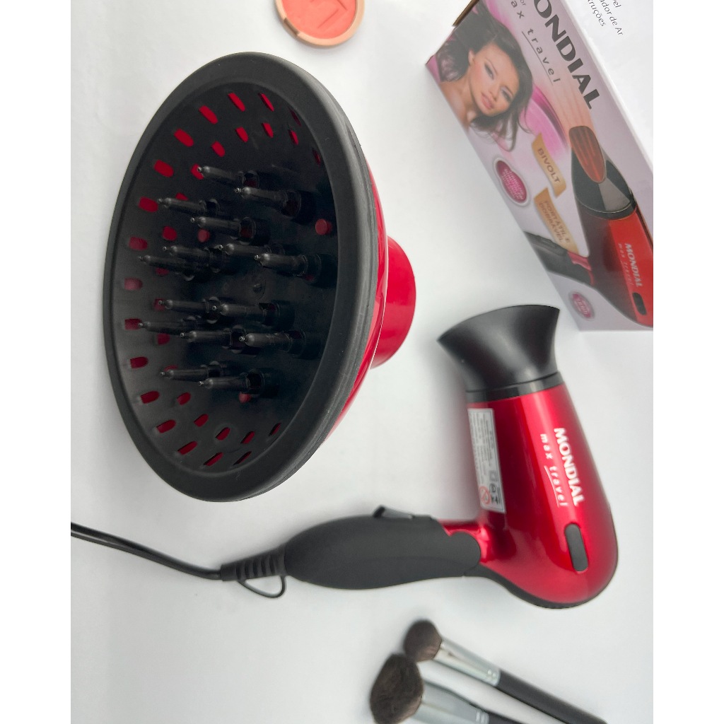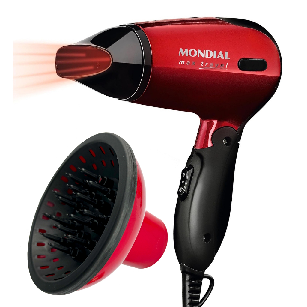 Secador de Cabelo Mondial 1200w Mini Dobrável Viagem Bivolt Com Difusor De Cachos