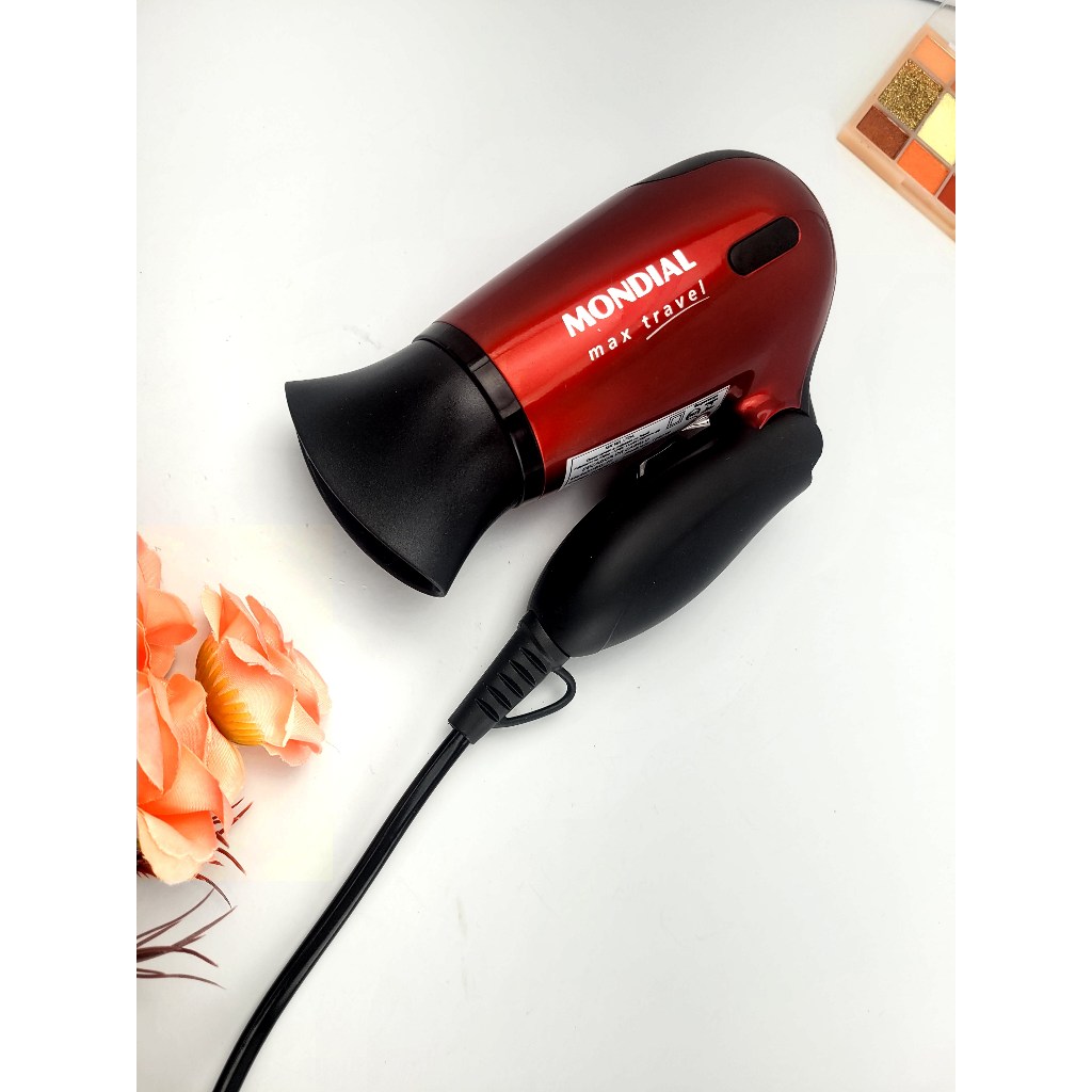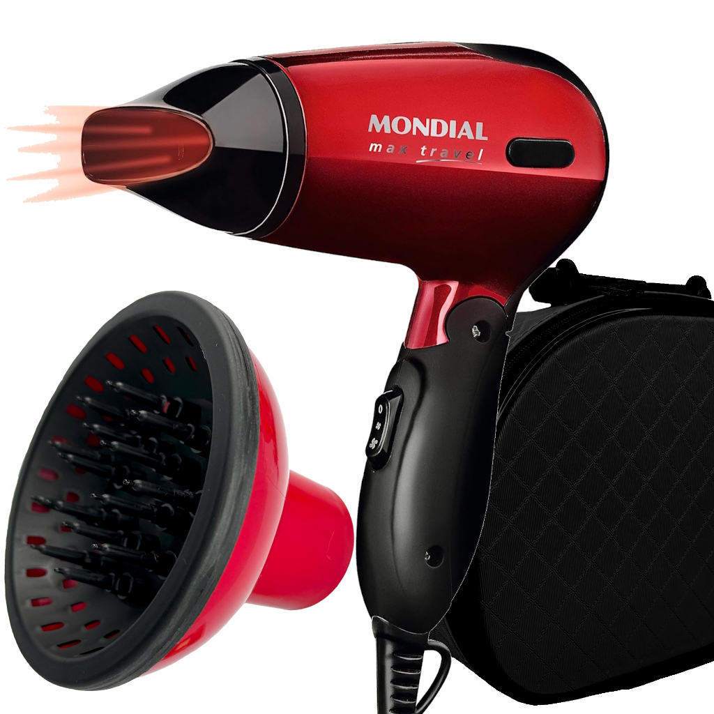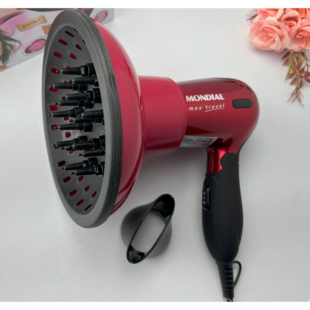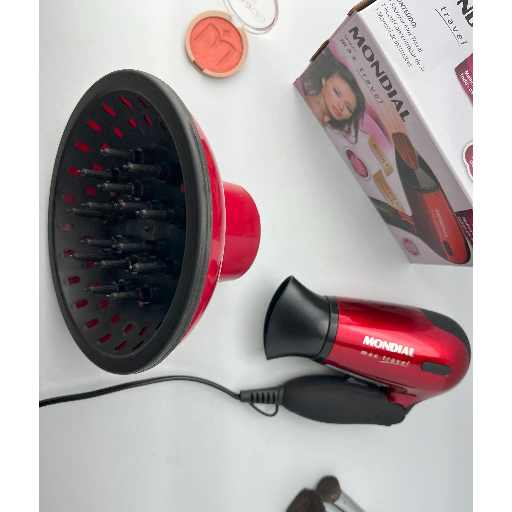 Secador de Cabelo Mondial 1200w Mini Dobrável Viagem Bivolt Com Difusor De Cachos