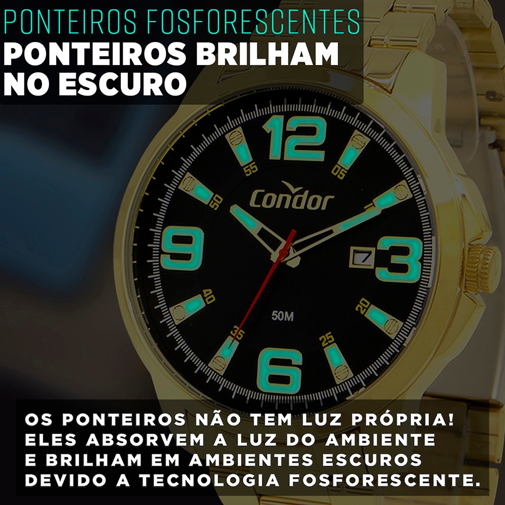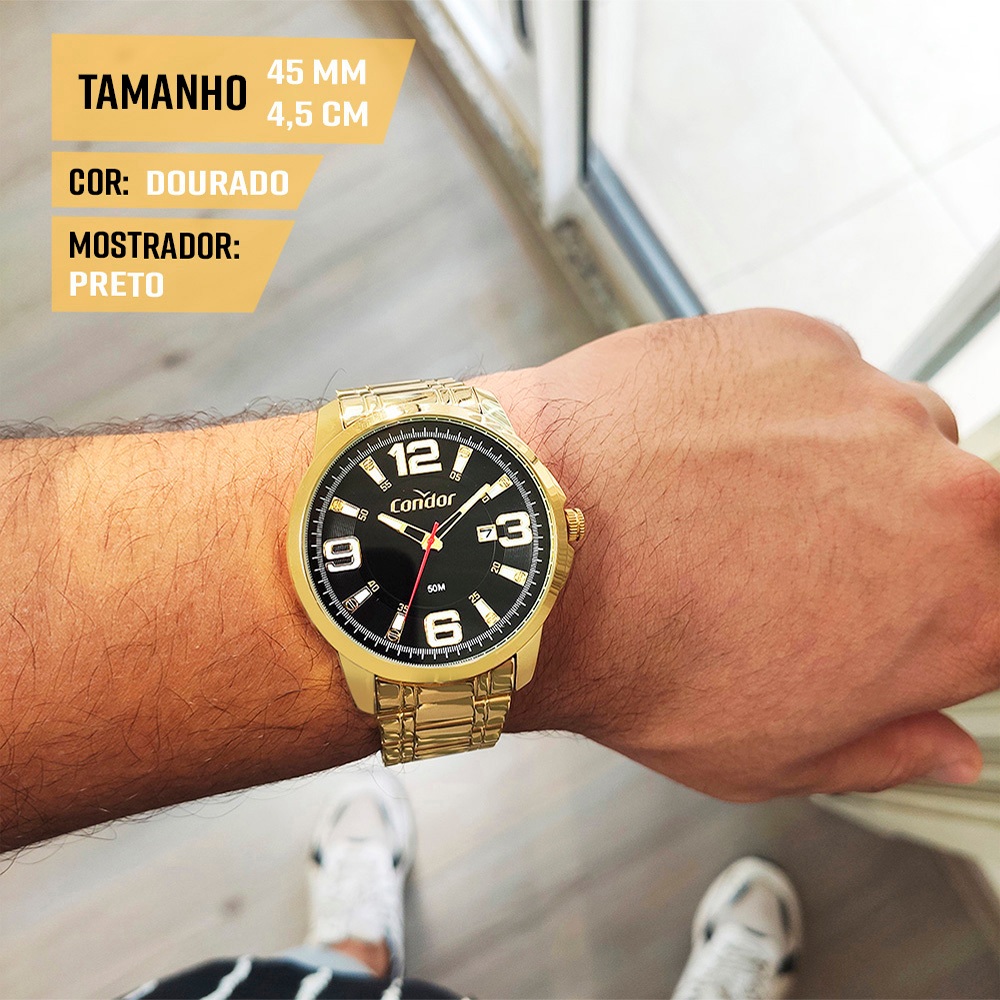 Relógio Condor Masculino Dourado Prova d'água com 1 ano de garantia